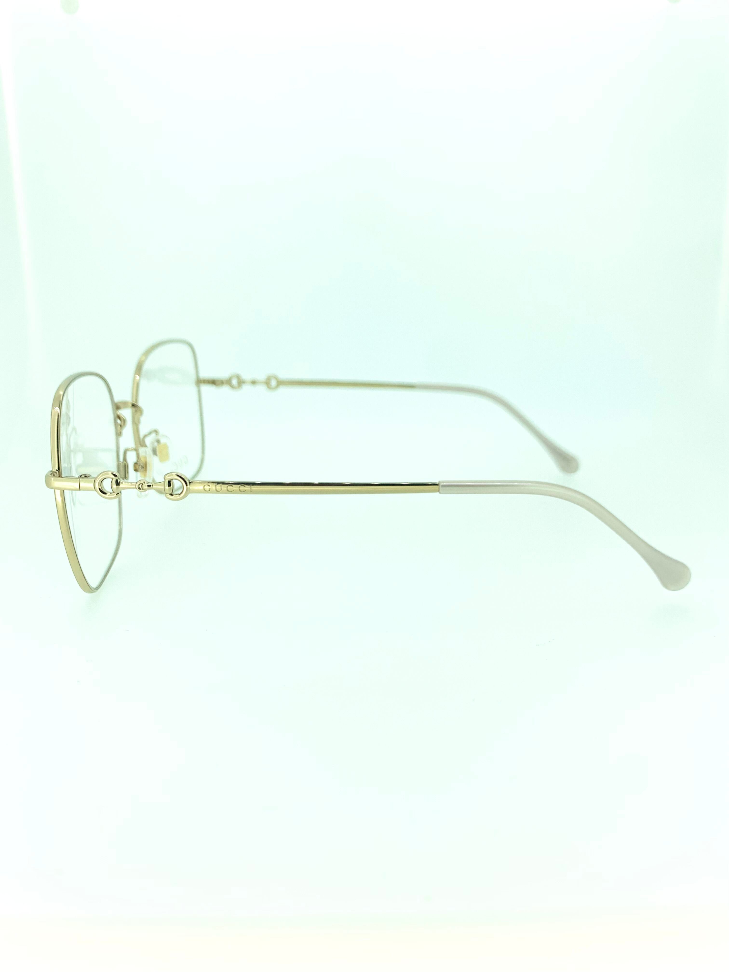 海外セレブのようなワイドな変則スクエアシェイプのフロントがインパクトのあるメタルフレーム。ワイドなフロントデザインに対して細身メタルを合わせることで、フロントを引き立たせながらスタイリッシュにかけられるシルエットになっています。高級感のあるゴールドメタルに清潔感のあるパールカラーの先セル(耳当て)を合わせ、綺麗めスタイルでまとめた一流ブランドらしいデザインでまとまりました。