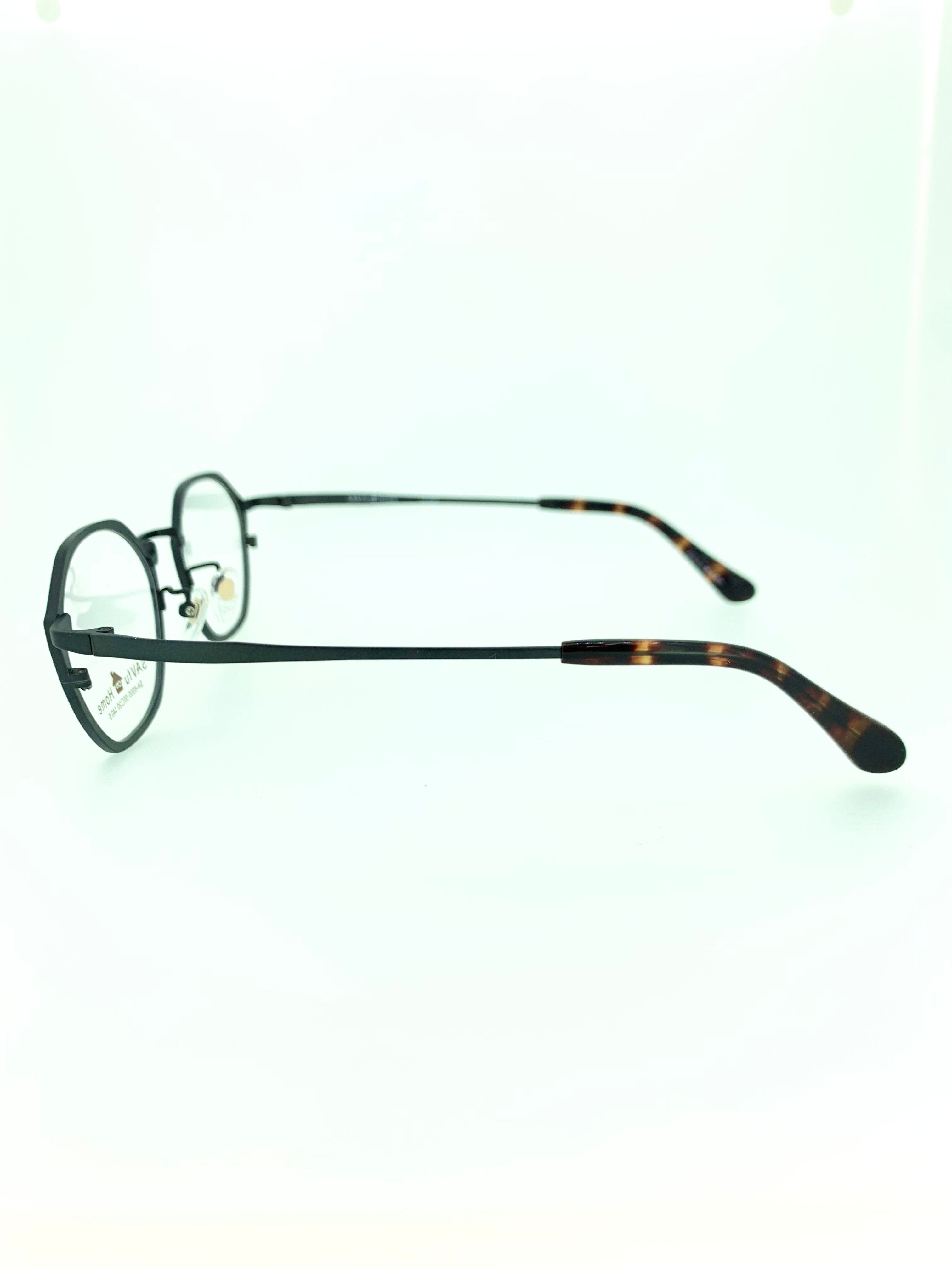 肌触り良くザラつかせた独特な質感のメタル生地にレンガの外壁のような凹凸のある迷彩柄のフロントリムが個性的なメタルフレーム。コンパクトなヘキサゴンシェイプの愛嬌ある雰囲気とワイルド感のある迷彩柄の相反するデザインが、絶妙なバランスで混ざり合う斬新なフレームワークとなっています。ブラックのメタルフレームが迷彩柄と相性が良くワイルドなカラーリングに仕上がりました。