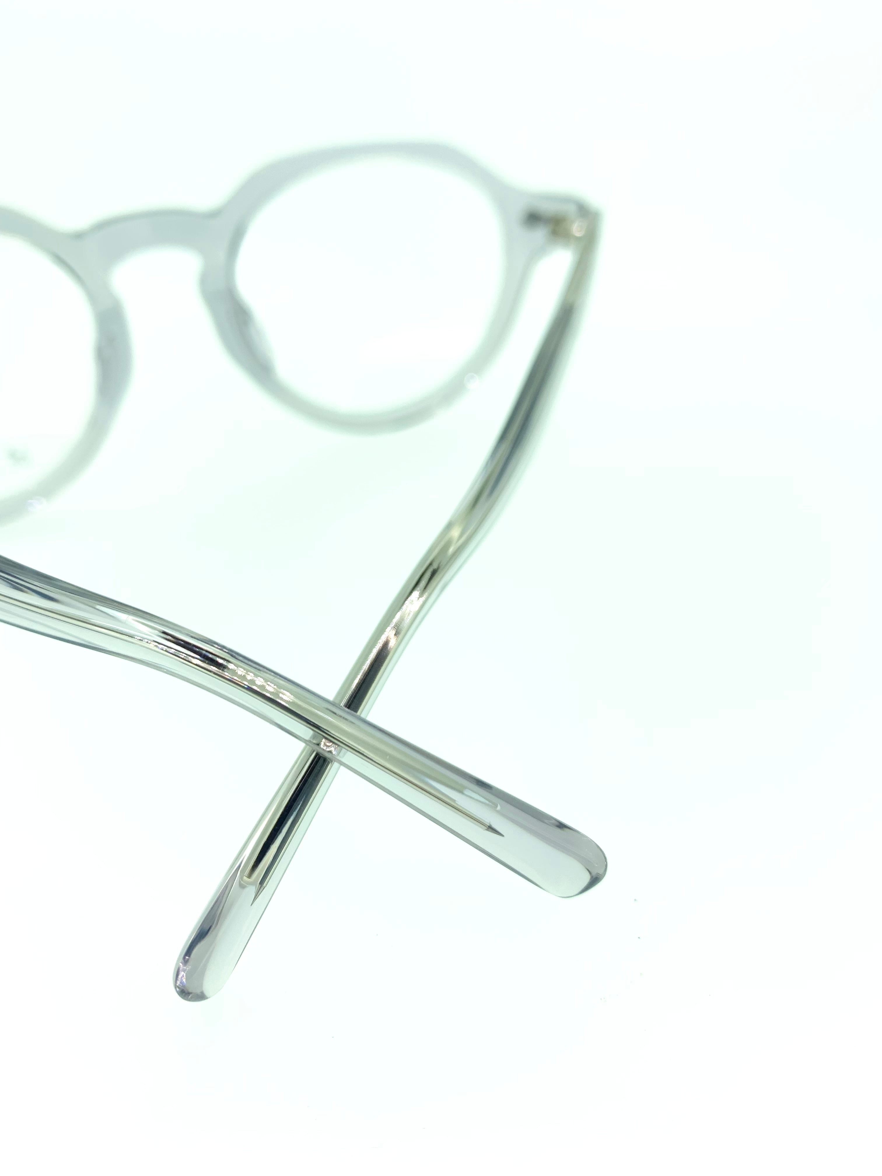個性的なクラウンパントシェイプにクリアグレーを合わせたお洒落なセルフレーム。肉厚セルがしっかりとした存在感を発揮し、クリアグレーのカジュアルでクールなファッション性の高い作品となっています。クラウンパント×クリアカラーの組み合わせは、かけるだけで個性を主張できるコーデに抜群のアイテムです。
