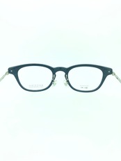 主張のない柔らかいウェリントンシェイプのセルフロントに細身の平メタルテンプルを合わせたコンビネーションフレーム。ネイビー×シルバーの洗練されたカラーリングは、英国紳士のようなスタイリッシュで清潔感のあるお洒落なデザインとなっています。セルのカジュアルさとメタルのスタイリッシュさ、両方の良さを感じられるオススメの作品です。