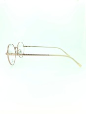 自然体なエクルベージュのふわっとした色合いに逆三角形のようなクラウンパントの丸みを帯びたシェイプが相性抜群。清楚でありながら気品も感じる独特なデザインは、かける方を選ばない優秀なカラーリング。テンプルにも幻想的な模様を施し、細かなところにも気を抜かないデザイン性の高さを感じます。