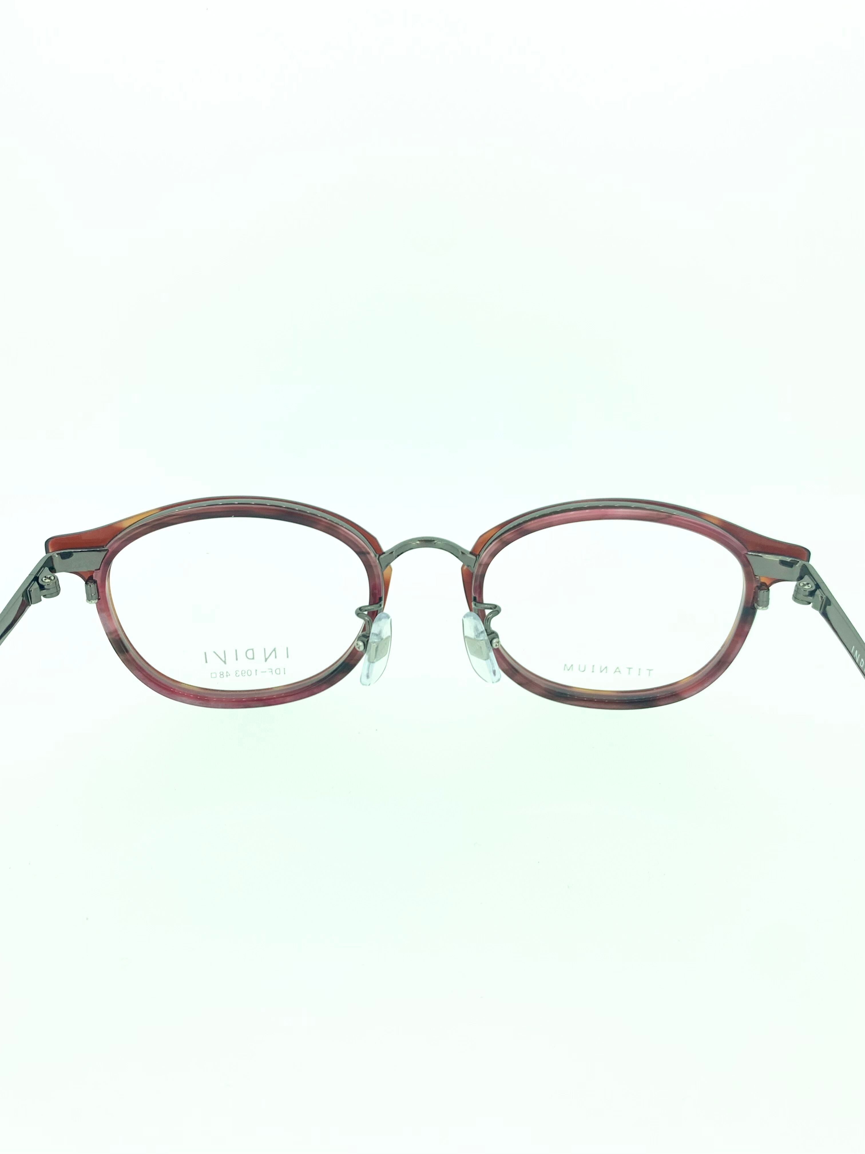 重厚感のあるダークグレーのメタルリムにセルリムを重ねたワッパデザインがお洒落なメタルフレーム。赤紫がかった独特なデミ柄のセル生地が幻想的な雰囲気にさせます。天地浅めなボスリントンシェイプに薄っすらと透けるセルリムは奥行きを感じさせる作品となっています。カジュアルにかけられて他と被らないオススメの1本です。