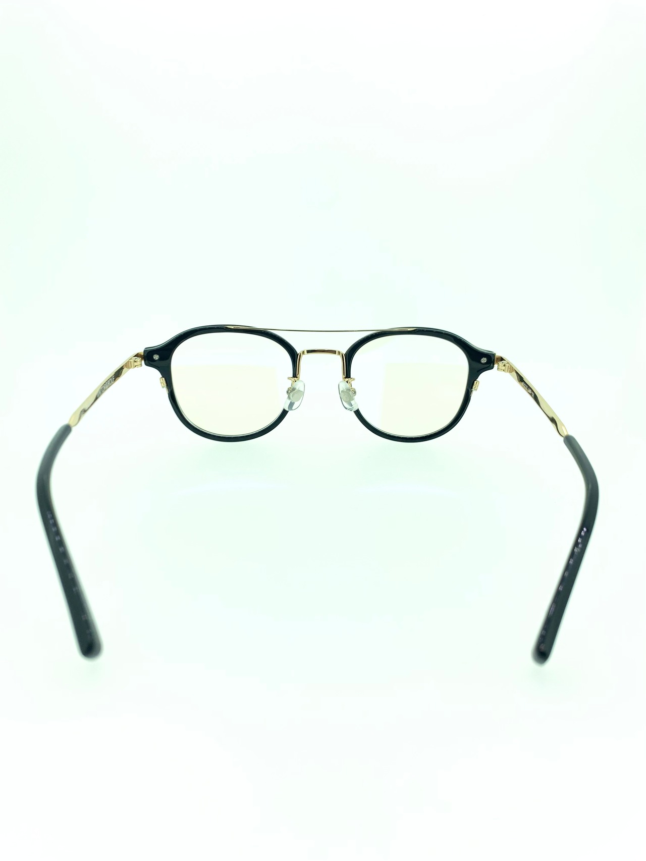 目元の印象をしっかりと魅せるセルワッパデザインに現代的なボスリントンシェイプ、ツーブリッジのクラシカルな雰囲気といった多数の個性を綺麗に掛け合わせツーブリッジフレーム。喧嘩しそうなほどの個性のぶつかり合いを計算された緻密なデザイン性でお洒落にまとめ上げています。カラーリングもコーデに合わせやすいブラック×ゴールドなのも嬉しいポイントですね。