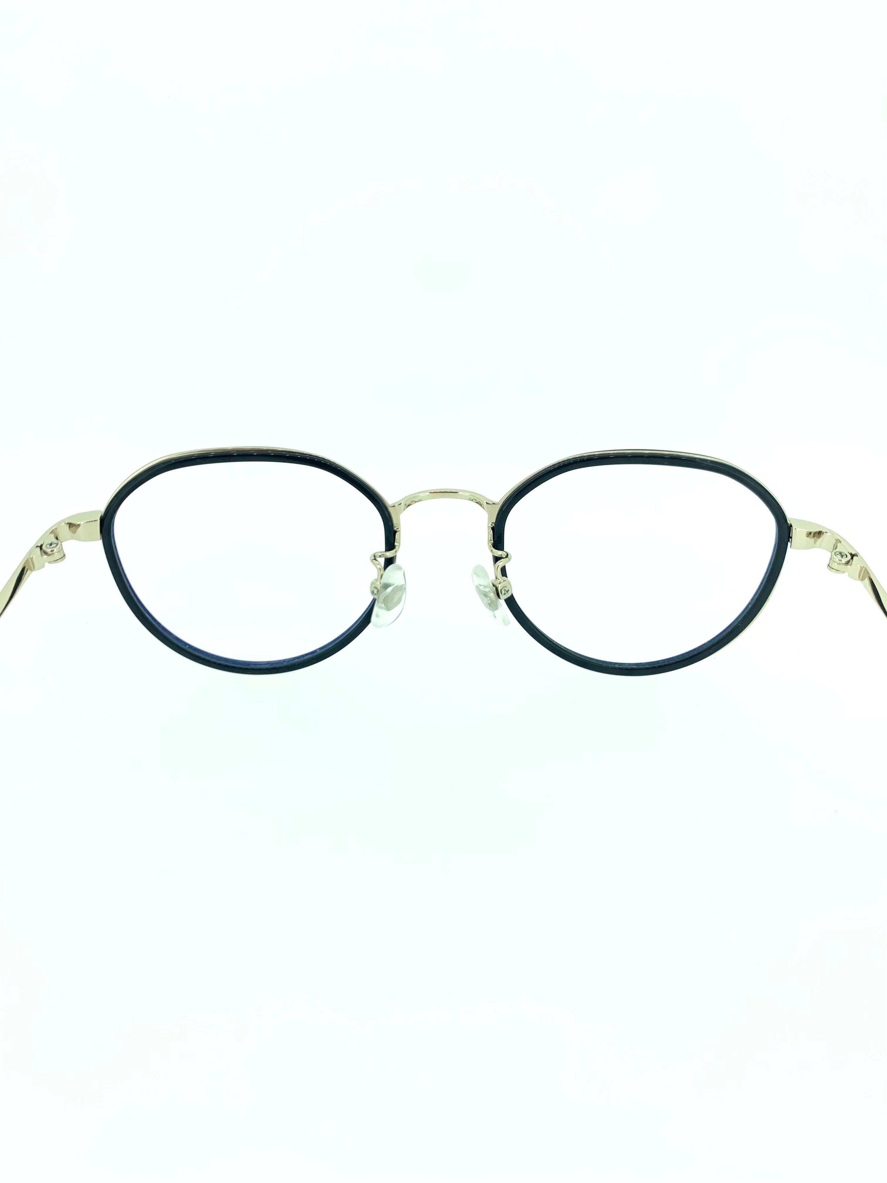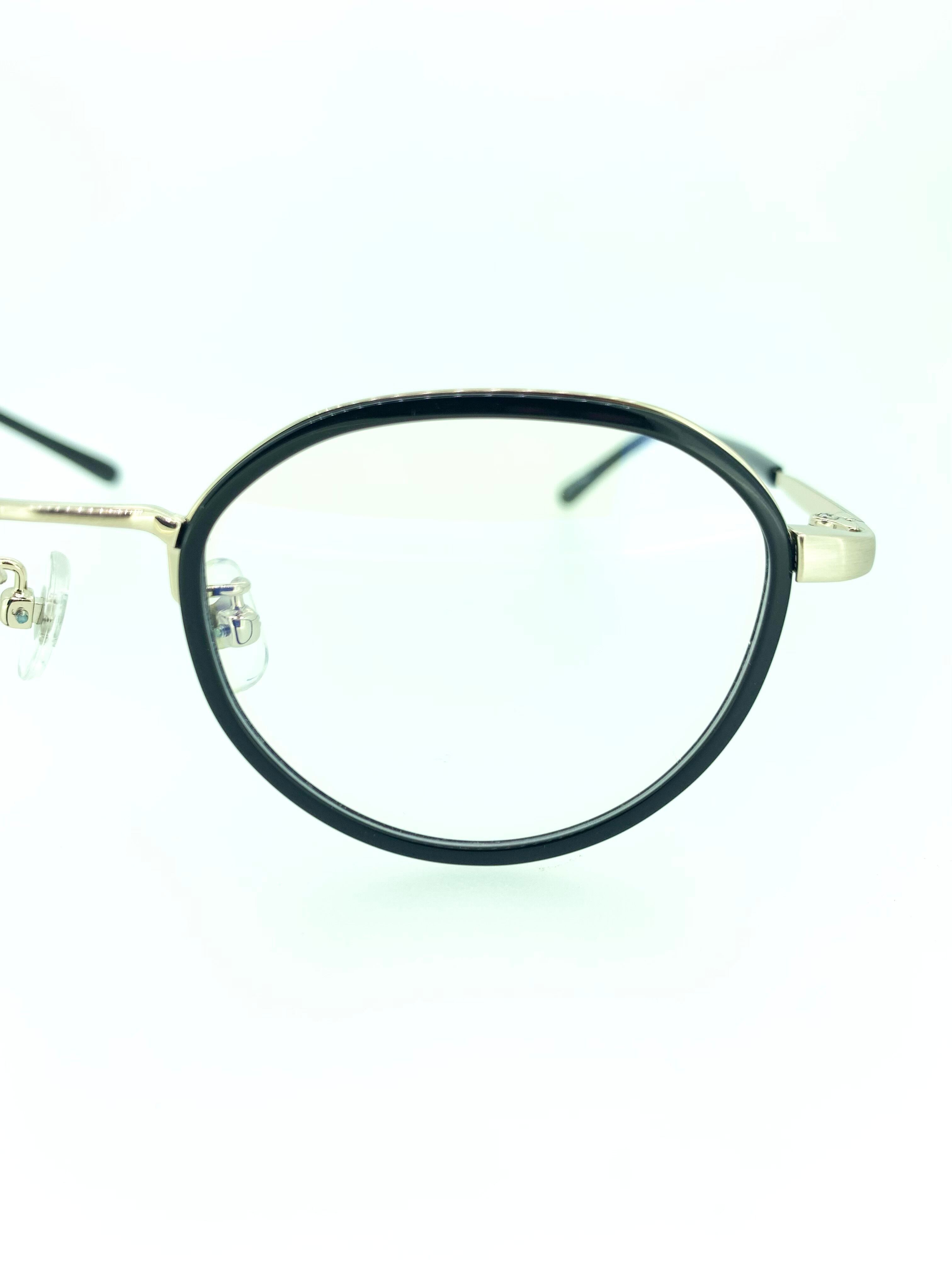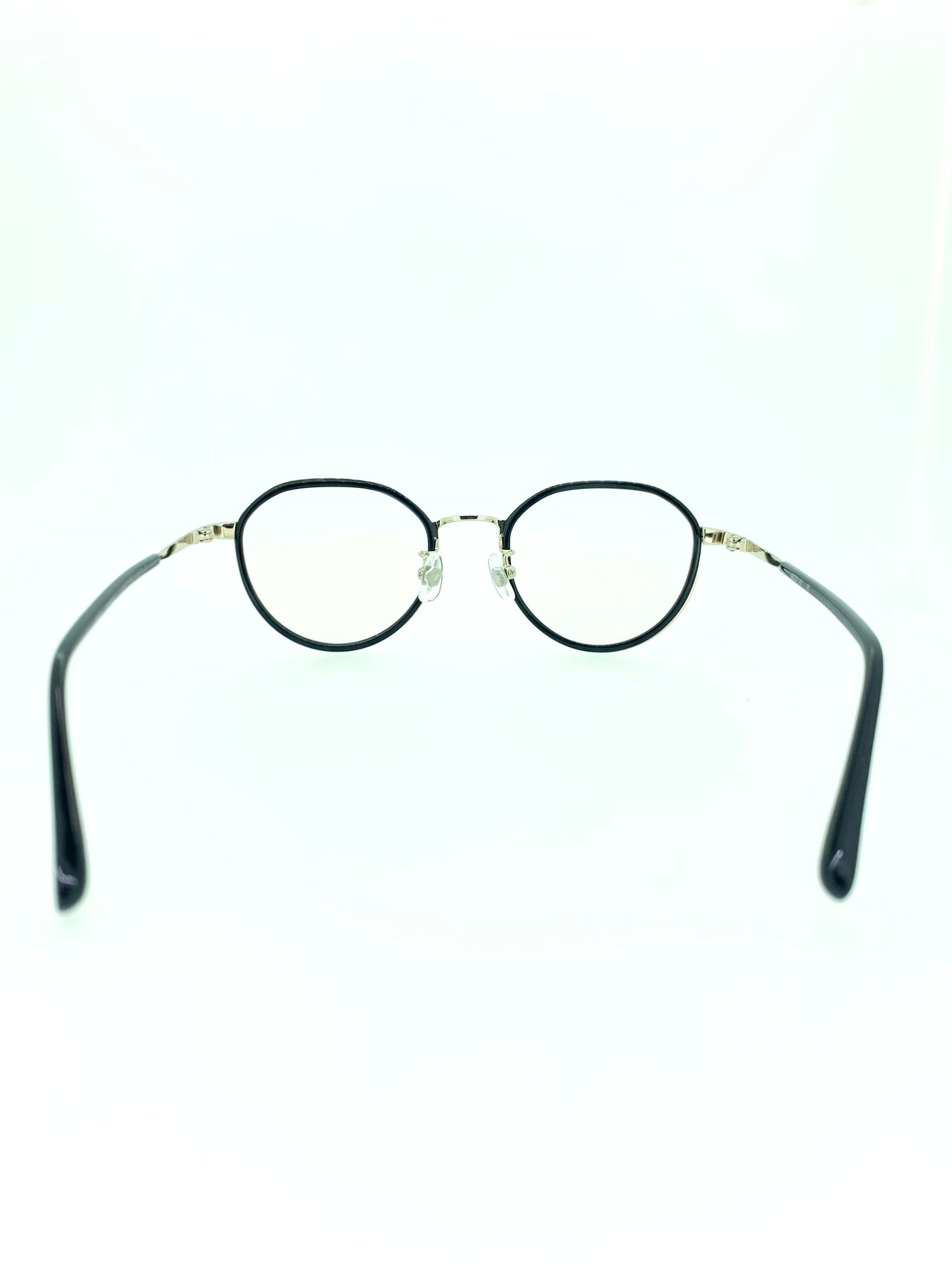 緩やかなクラウンパントシェイプの丸み加減がお洒落なメタルフレーム。メタルだけだと堅くなる印象をフロントセルを重ねるセルワッパデザインにすることで、カジュアルさもプラスされたバランスの良い作品です。スタイリッシュに引き締めるブラックに高級感のあるゴールドメタルを合わせ、カジュアルさとスタイリッシュさが完璧な1本に仕上がりました。