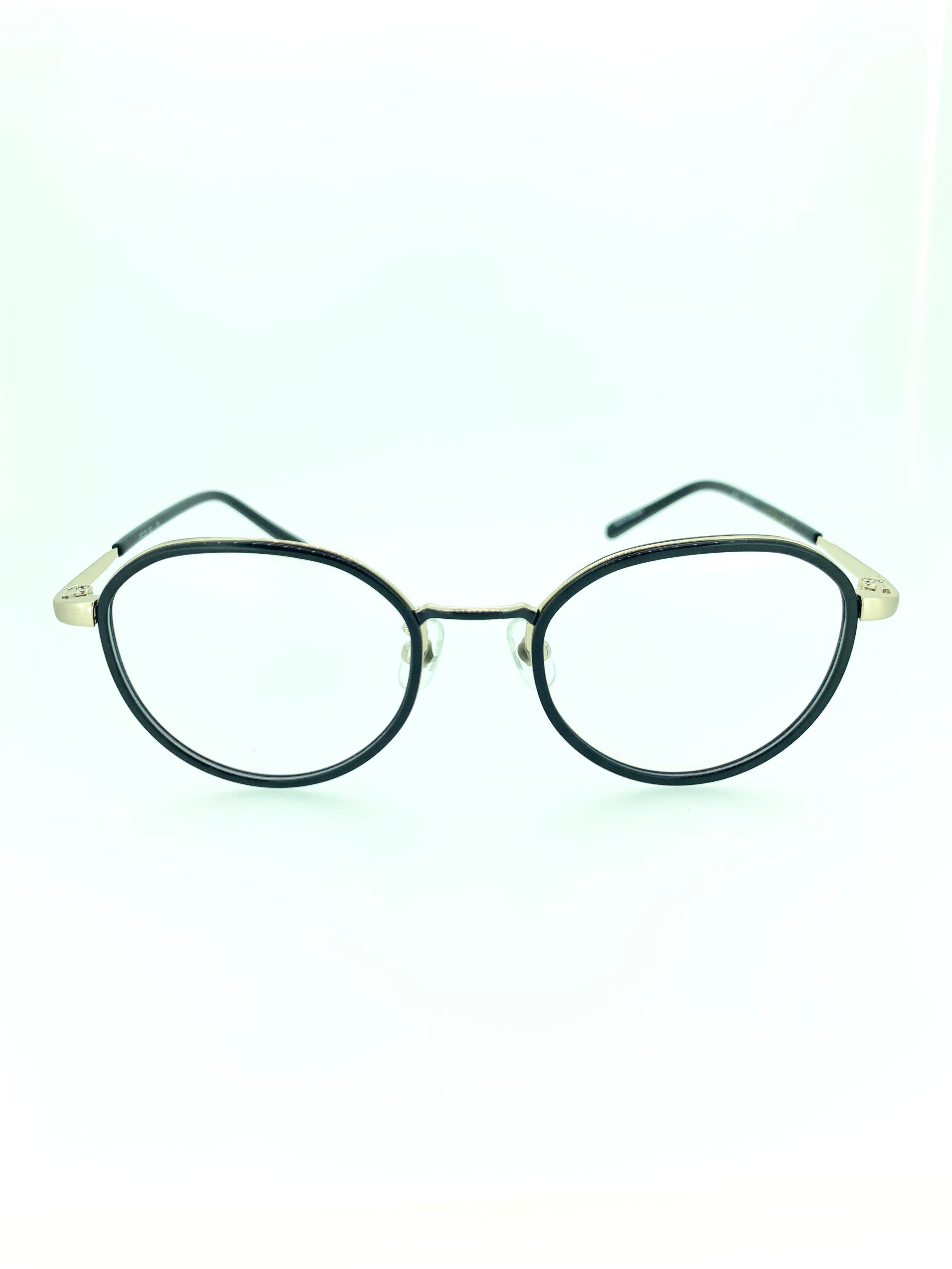 緩やかなクラウンパントシェイプの丸み加減がお洒落なメタルフレーム。メタルだけだと堅くなる印象をフロントセルのセルワッパデザインと合わせるようにブリッジもカラーを合わせ、フロントの印象を強調させた作品です。スタイリッシュに引き締めるブラックに高級感のあるゴールドメタルを合わせ、カジュアルさとスタイリッシュさが完璧な1本に仕上がりました。