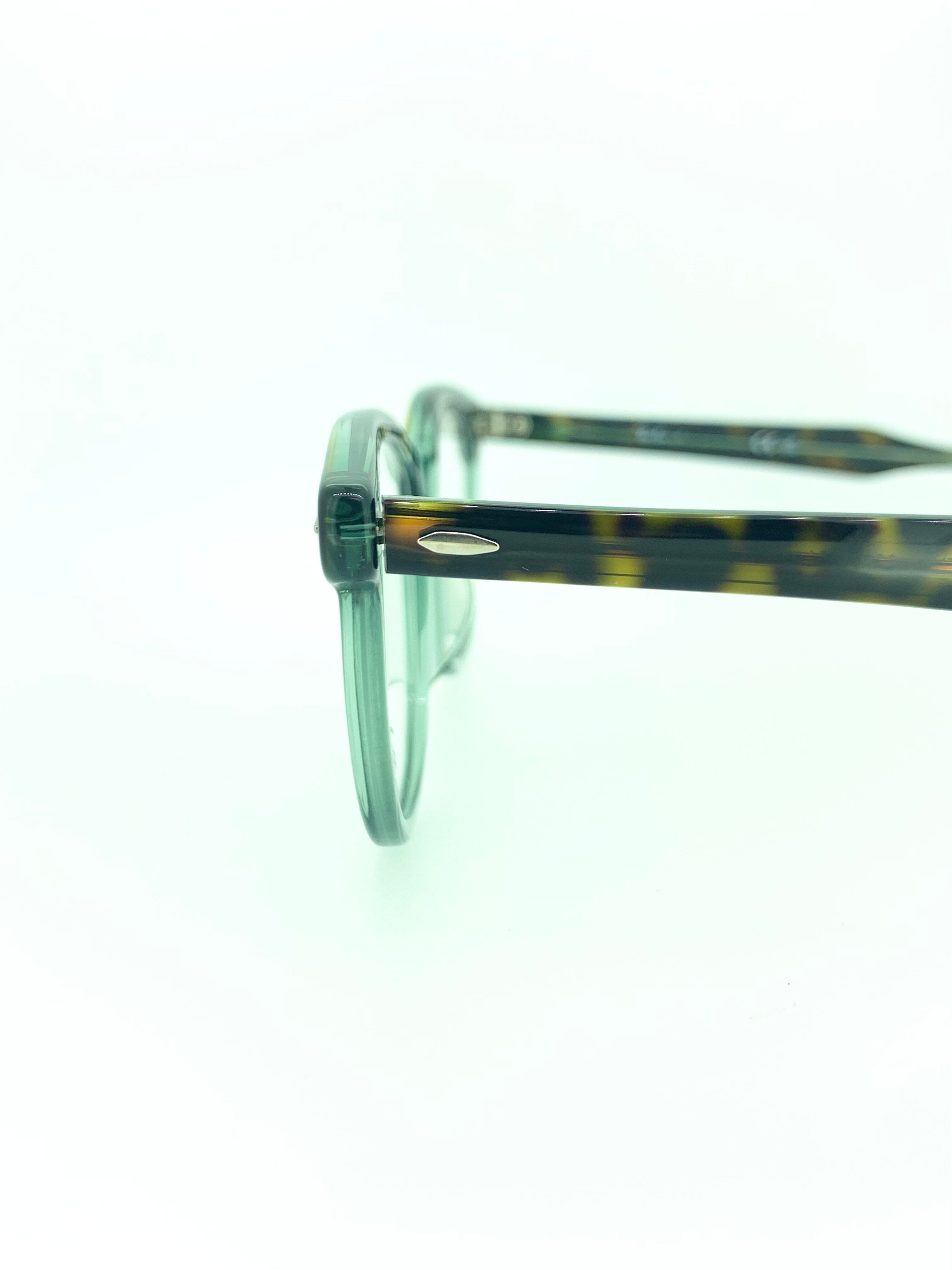 柔らかい雰囲気で人気の高いボストンシェイプをRayBanらしく仕上げたセルフレーム。上部リムに異なるカラーのセル生地を重ねることでブローのような雰囲気を放つお洒落なデザインとなっています。ベースカラーにはクリアグリーンを採用し、どんなカラーにも相性の良いブラウンデミでまとめた周りと被らない絶対的な個性を持った作品です。