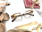 ブローラインに曲線をつけたボスリントンシェイプが柔らかい雰囲気のあるセルフレーム。モダンでカジュアルにかけられるスケルトンにブロンズカラーを重ねたバイカラーがお洒落な作品です。ブローラインだけのカラーリングにセル生地を重ねることで、立体的な印象にさせた秀逸なデザインとなっています。クリアセルでも扱いやすいカラーリングのため、コーデを崩さず抜群の存在感を誇ります。