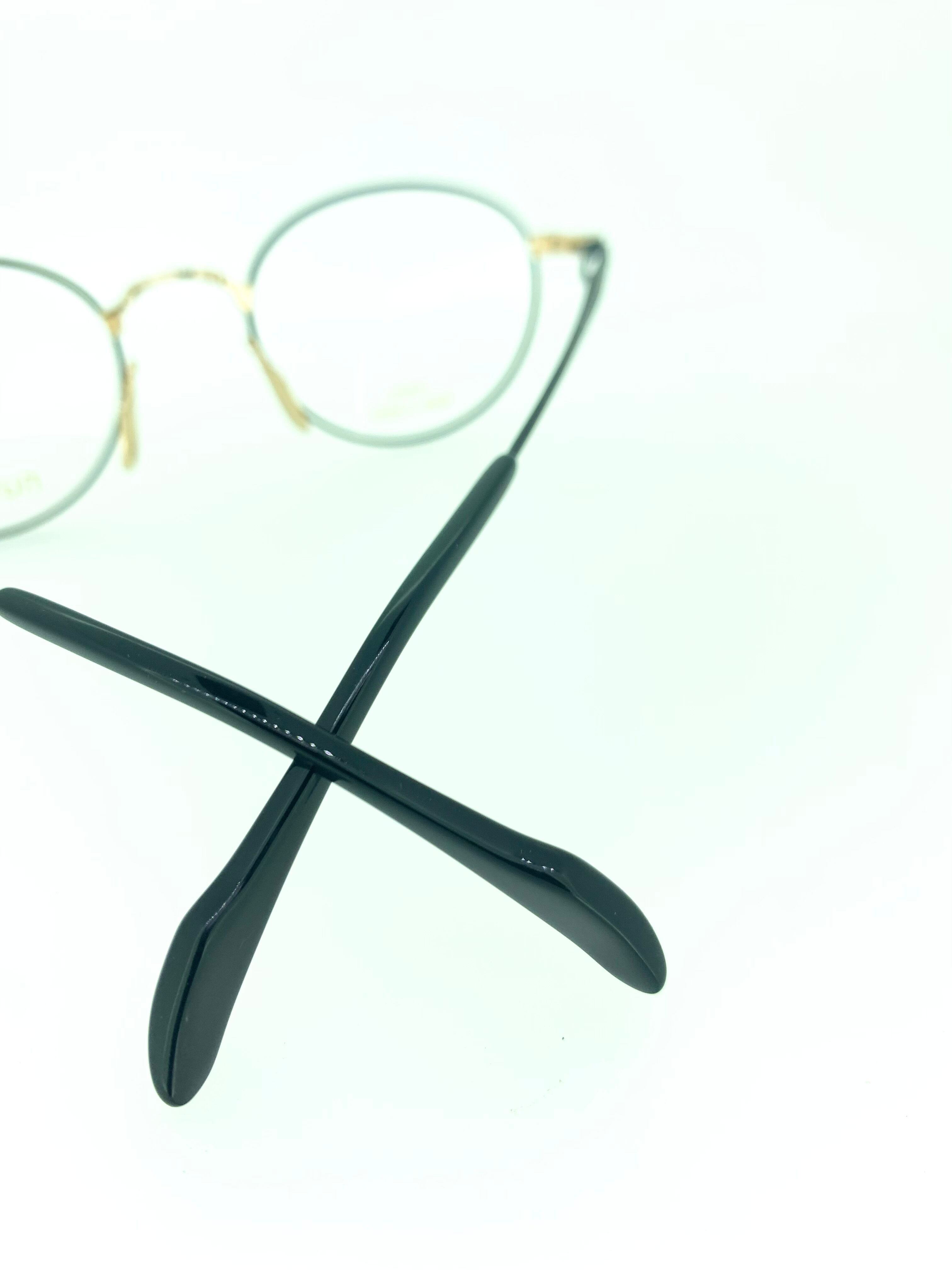 シックで合わせやすいブラックカラーと上品なゴールドメタルのカラーリングがお洒落なメタルフレーム。ほぼラウンドに近い丸みのあるボストンシェイプは知的で柔らかい雰囲気を醸し出し、クラシックなフレームワークとの相性も抜群です。総メタルの鼻パッド部分が他にはない良い味をだしていますね。