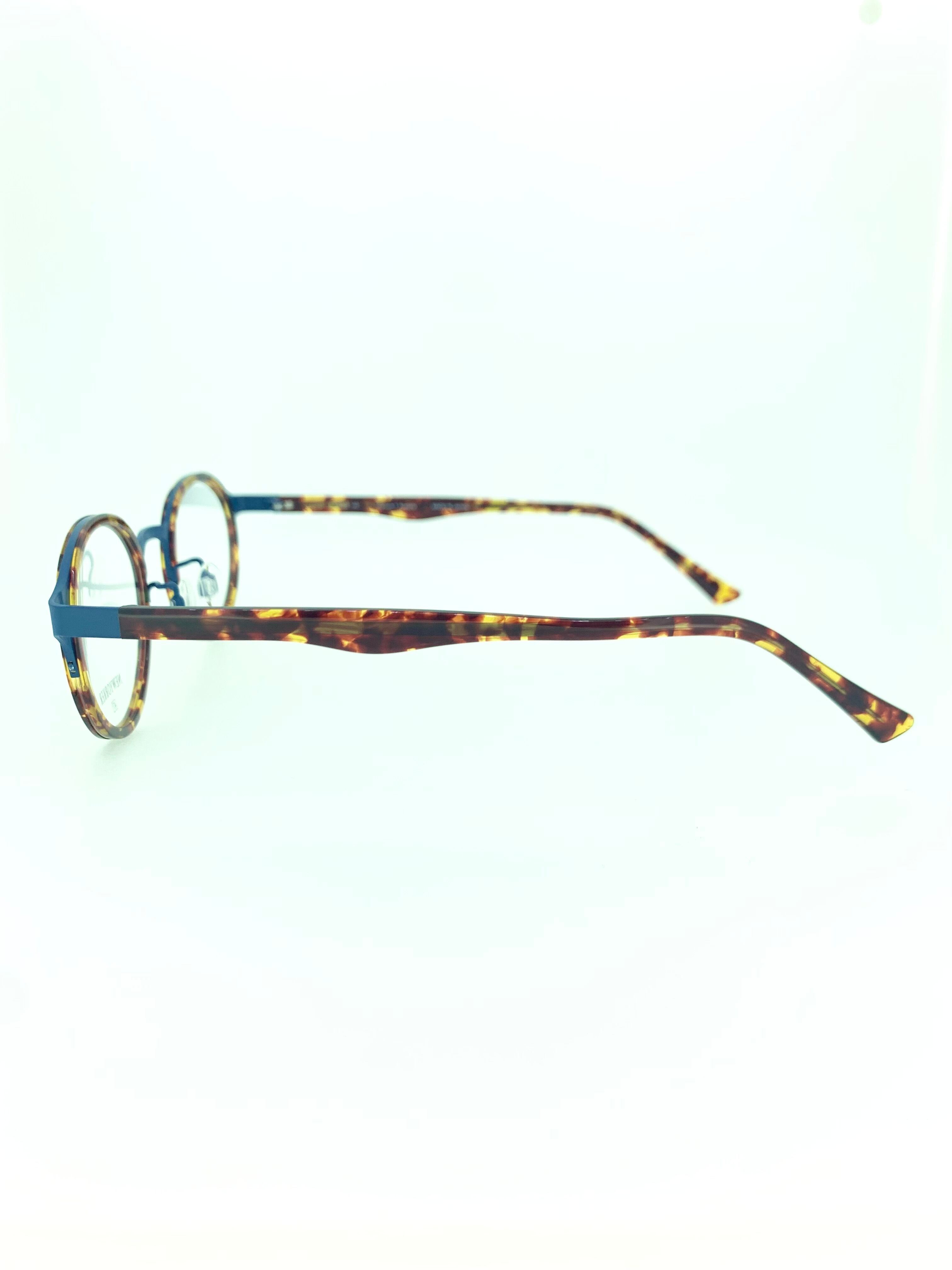 ナイロールタイプにセルワッパを組み合わせた珍しいコンビネーションフレーム。珍しいフレームワークに加え、カラーリングにも遊び心を感じる作品となっています。メタル部分のブルーとブラウンデミのコントラストは意外にも馴染みが良く、周りと被らない自分だけの魅力を引き出してくれます。