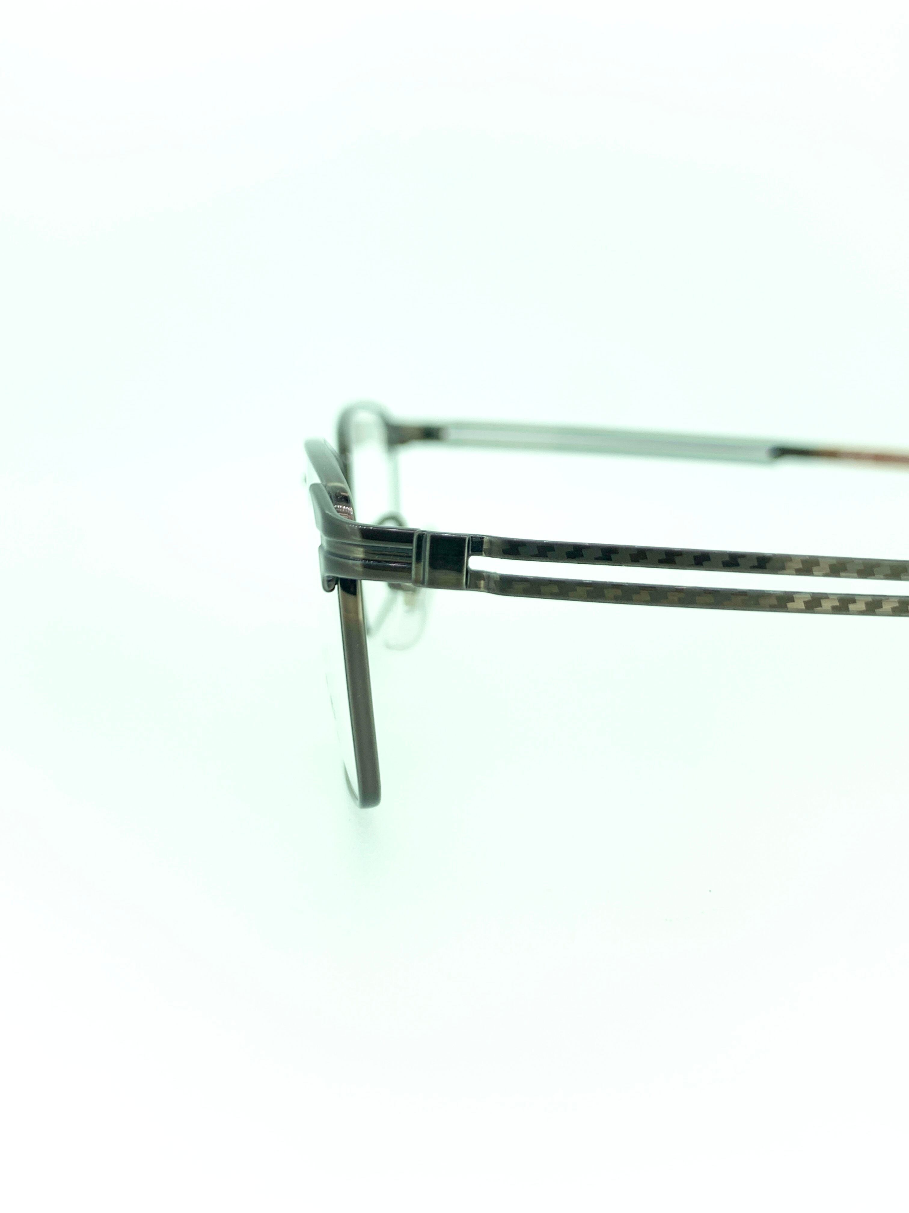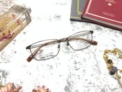 重厚感のあるブラウンフレームに明るめな同色の先セル(耳当て)でまとめたチタンフレーム。オールドスタイルの伝統的な渋さもあり、磨き上げられたスタイリッシュさもあるフレームワークはオンオフを問わない安心のお洒落さがあります。テンプルの2本ラインには波打つようなデザインが施され、シンプルになり過ぎないさりげないお洒落さが良いですね。