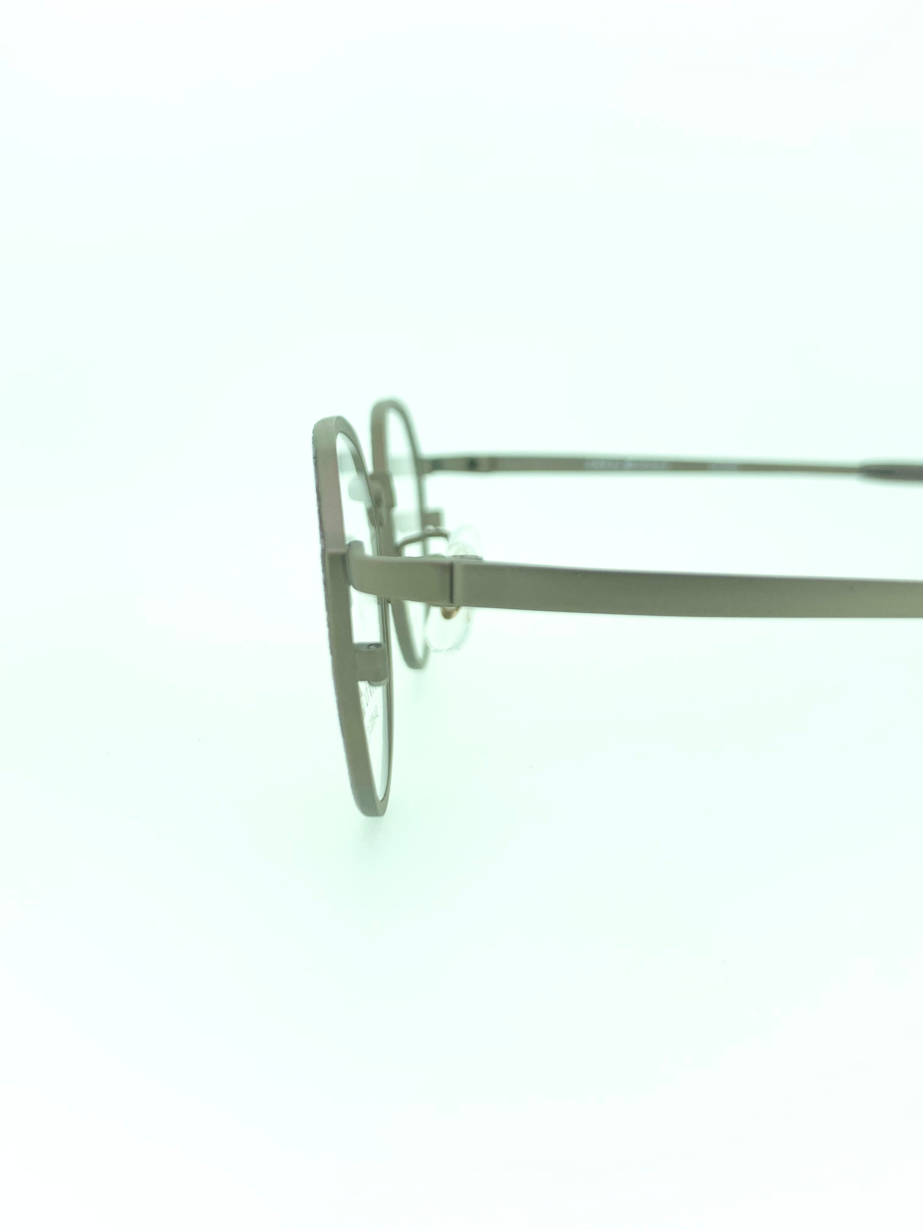 フォーンカラーの淡い色味とレンガ調の外壁のような凹凸のある迷彩柄フロントリムが特徴的なメタルフレーム。コンパクトなクラウンパントシェイプは自然にかけられてお洒落になれるオススメな作品です。同系色で合わせることで、個性的なデザインでも気軽にかられるのくらいまとっまているのも嬉しいポイントですね。他とは被らない魅力溢れる1本を持っているとコーデの幅も広がります。