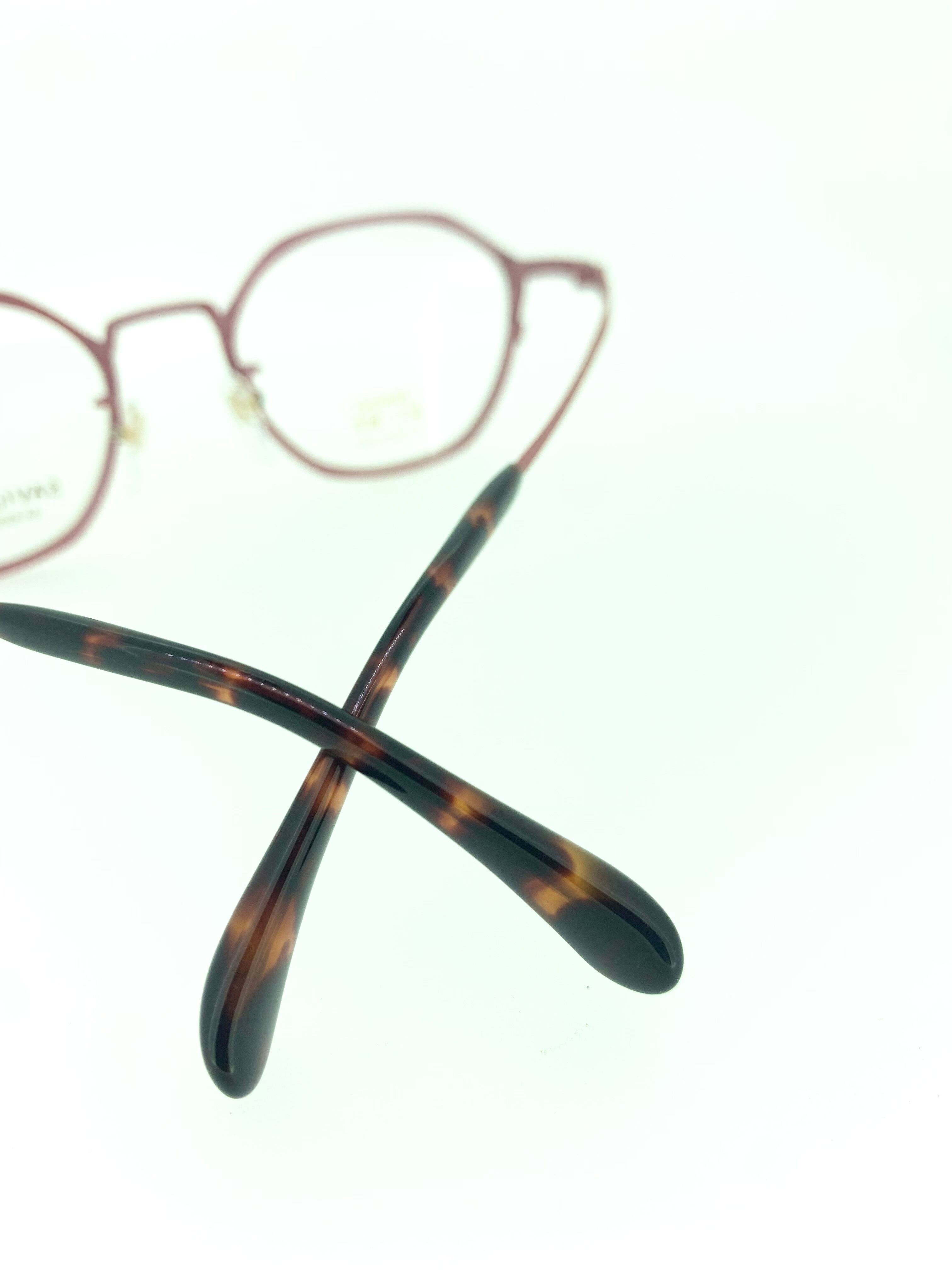 肌触り良くザラつかせた独特な質感のメタル生地にレンガの外壁のような凹凸のある迷彩柄のフロントリムが個性的なメタルフレーム。コンパクトなヘキサゴンシェイプの愛嬌ある雰囲気とワイルド感のある迷彩柄の相反するデザインが、絶妙なバランスで混ざり合う斬新なフレームワークとなっています。オールドローズのメタルフレームが迷彩柄と調和した大人っぽいカラーリングに仕上がりました。