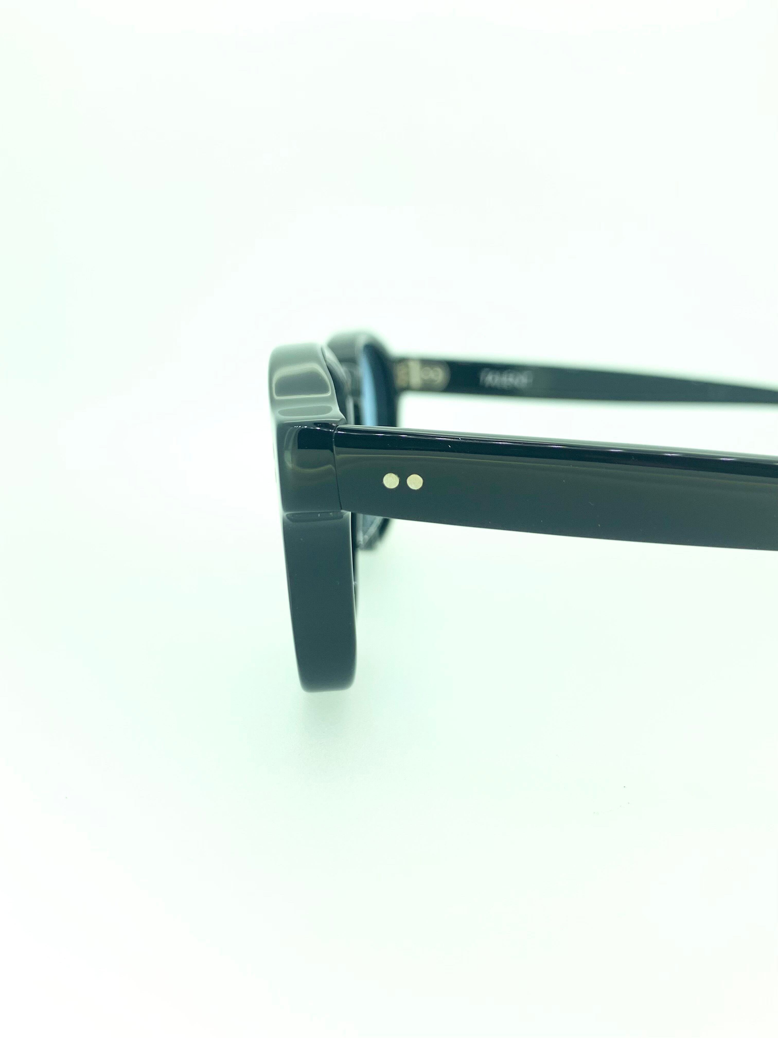 上部リムにはなだらかなカーブを描き、下部リムはスパッと直線的な変則ウェリントンシェイプがお洒落なセルフレーム。ブリッジはクラシックなキーホールブリッジを採用することで、モダンなシェイプデザインを大人っぽくまとめています。通常なら個性がぶつかりそうなデザインもEFFECTORらしい高いデザイン性でまとめた丁寧な作品です。レンズカラーはスカイブルーでポリッシュブラックのセル生地と相性が良くオススメな1本です。