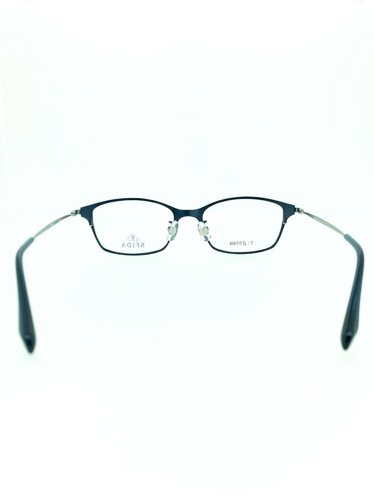 薄地のメタルフロントがシックでスタイリッシュな天地浅めなウェリントンシェイプのメタルフレーム。フロントが薄くデザインされているため、スッキリとした印象ながらもメタルリムのしっかりとした質感が絶妙なバランスを保っています。スクエアのようなフロントシルエットが堅実な雰囲気を与えます。薄地のメタルフレームにアイアンブルーの清潔感のあるカラーリングも抜群の相性で格好良い1本です。