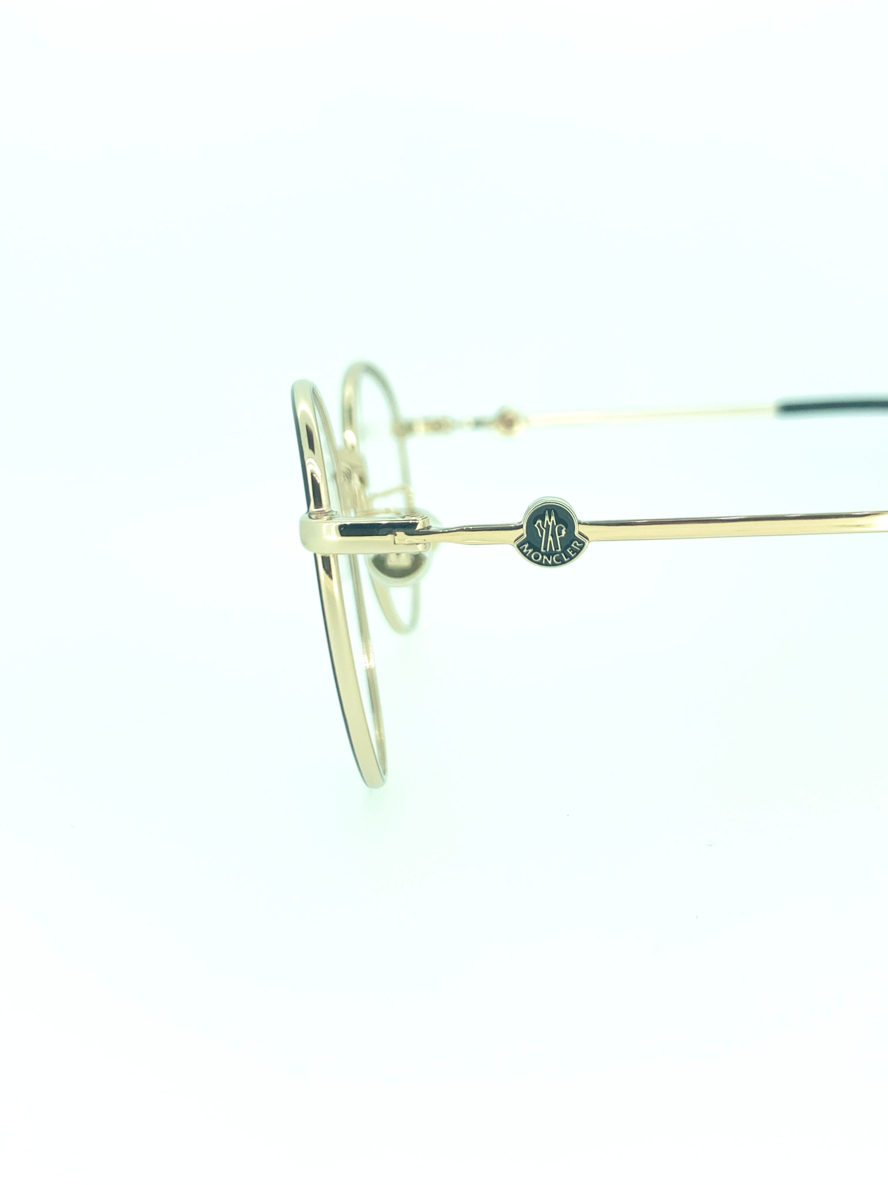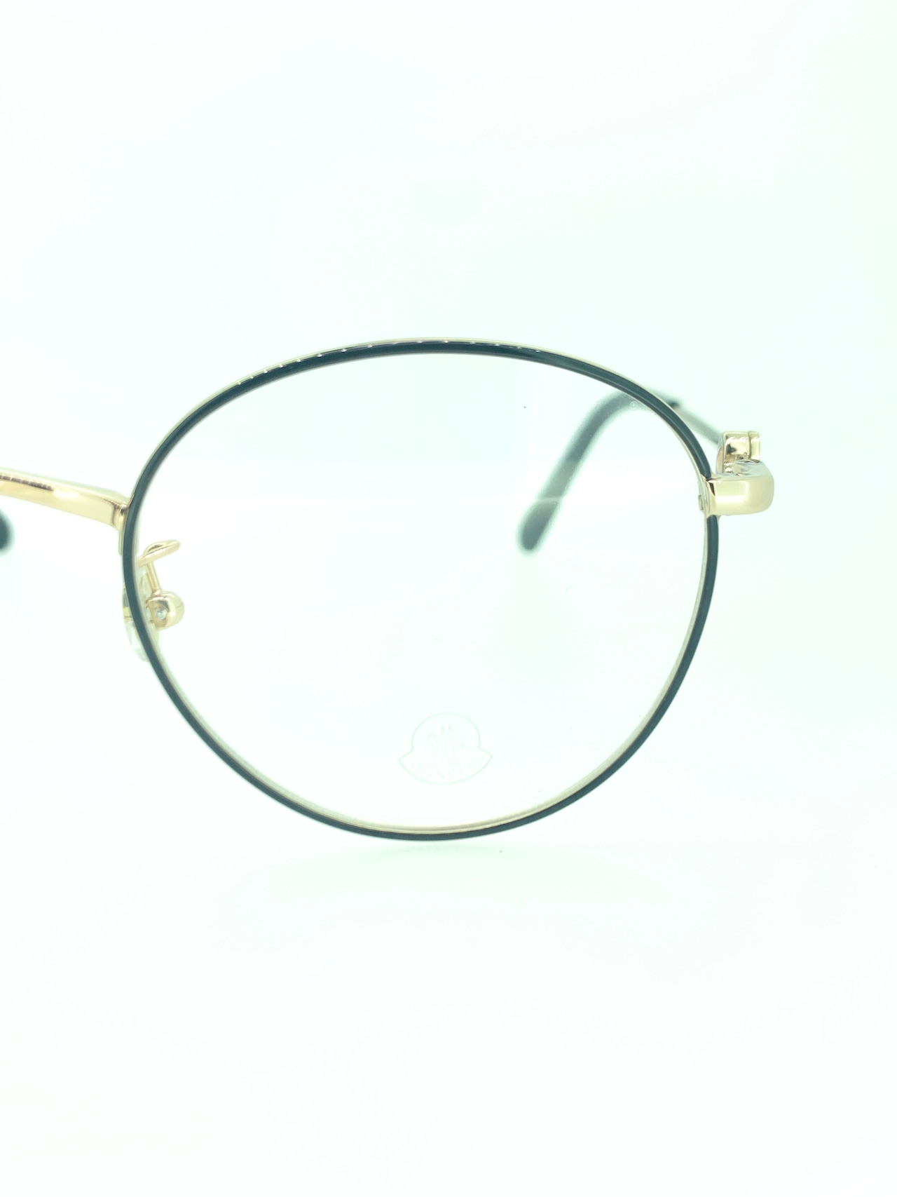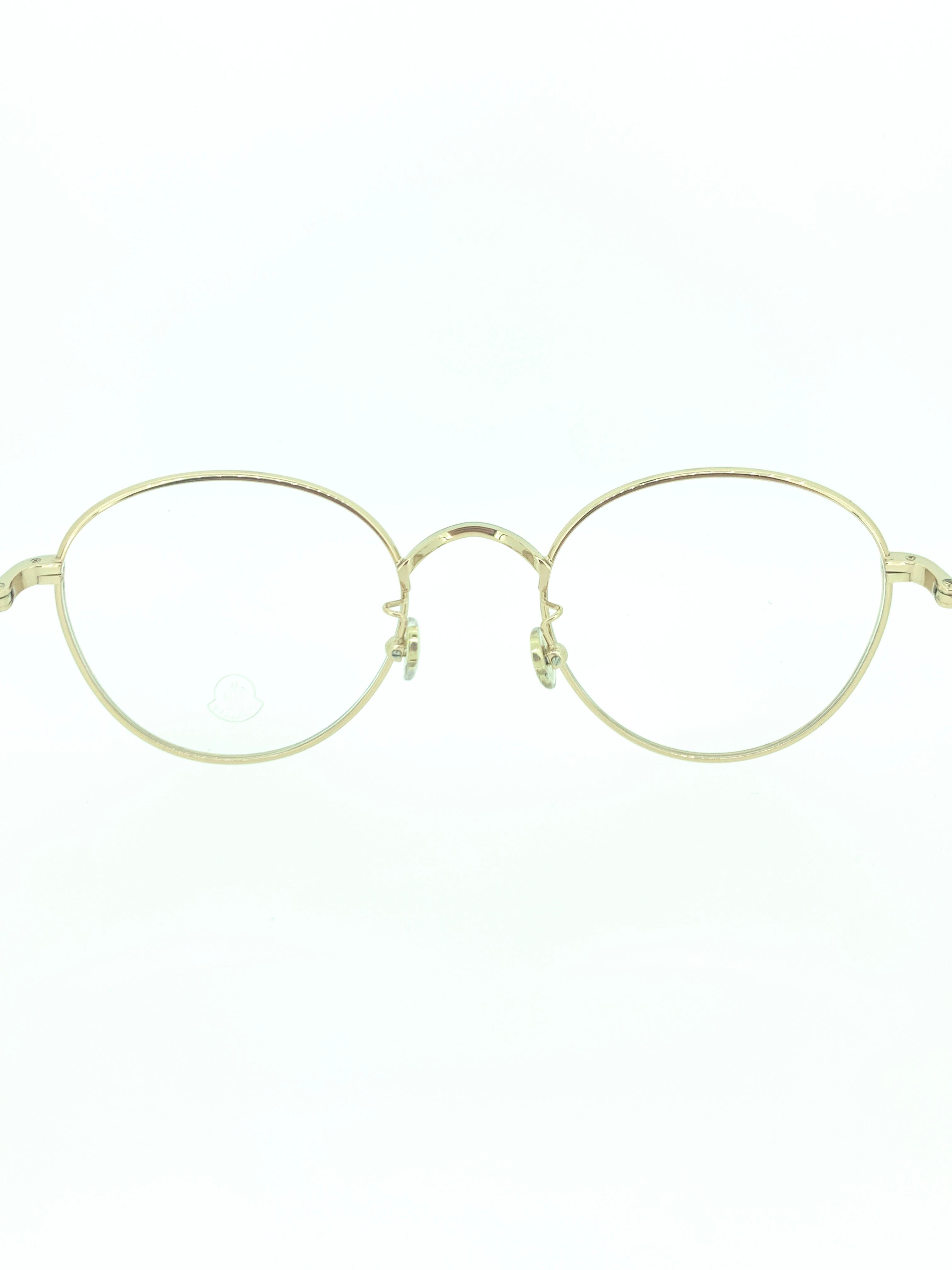 逆三角形のようなレンズ下部に幅を持たせたボストンシェイプが王道にてお洒落なメタルフレーム。フロントリムと先セル(耳当て)はシックなブラックカラーを採用し、ブリッジとテンプルメタルは高級感のあるイエローゴールドで仕上げました。テンプルにはMONCLERのロゴがワンポイントであしらわれ、シンプルにまとまったシルエットを綺麗めスタイルでお洒落にまとめた作品です。