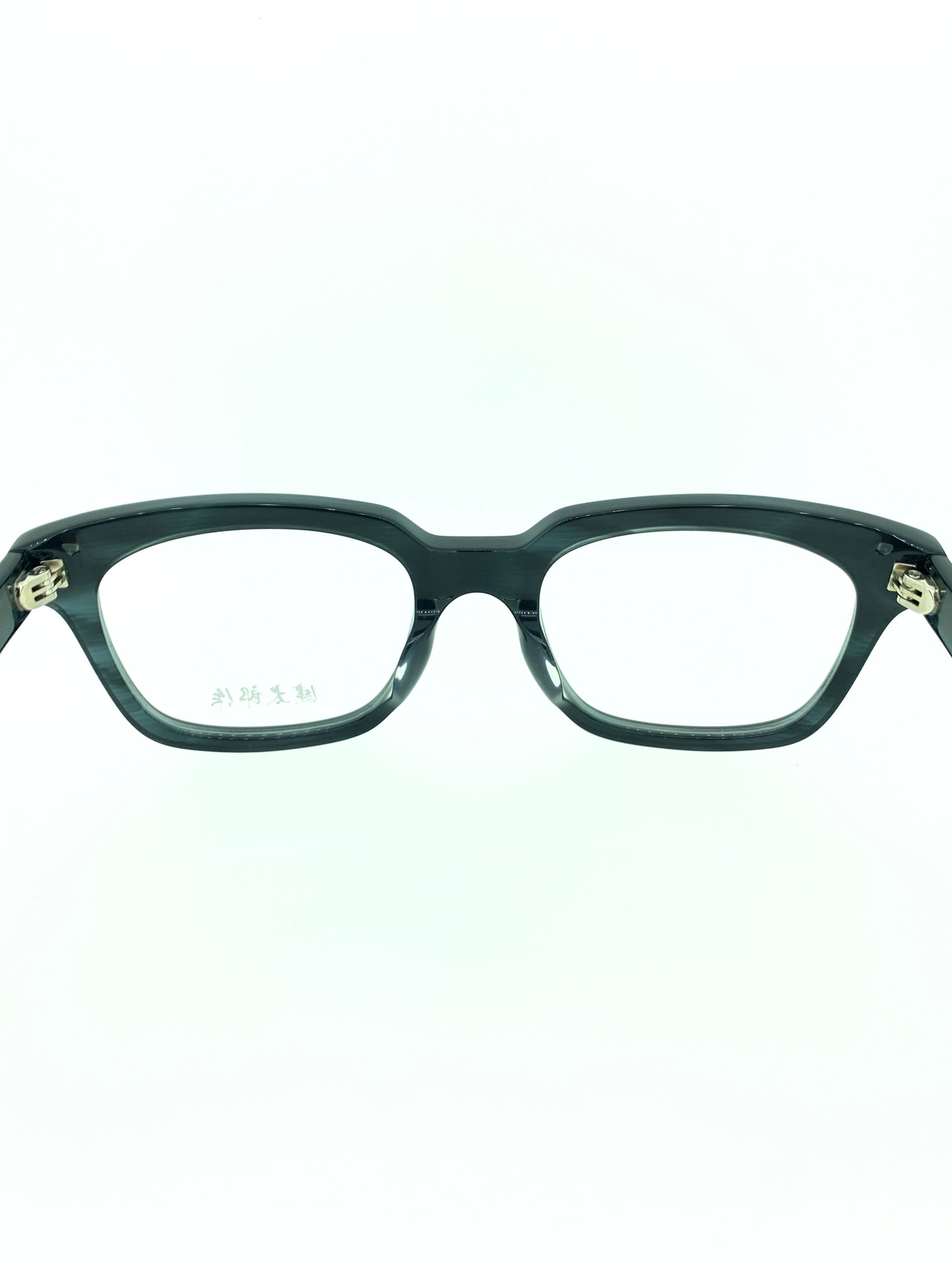 ワイドめなウェリントンシェイプのフロントはブリッジが中央付近に位置していて、目頭のリムデザインに角を出すことでオールドスタイル風のお洒落な雰囲気を演出しています。一見ブラックカラー単色に見えますがフロント下部はグラデーションになっていて、光の当たり具合でグレーササが見え隠れするお洒落なデザインになっています。