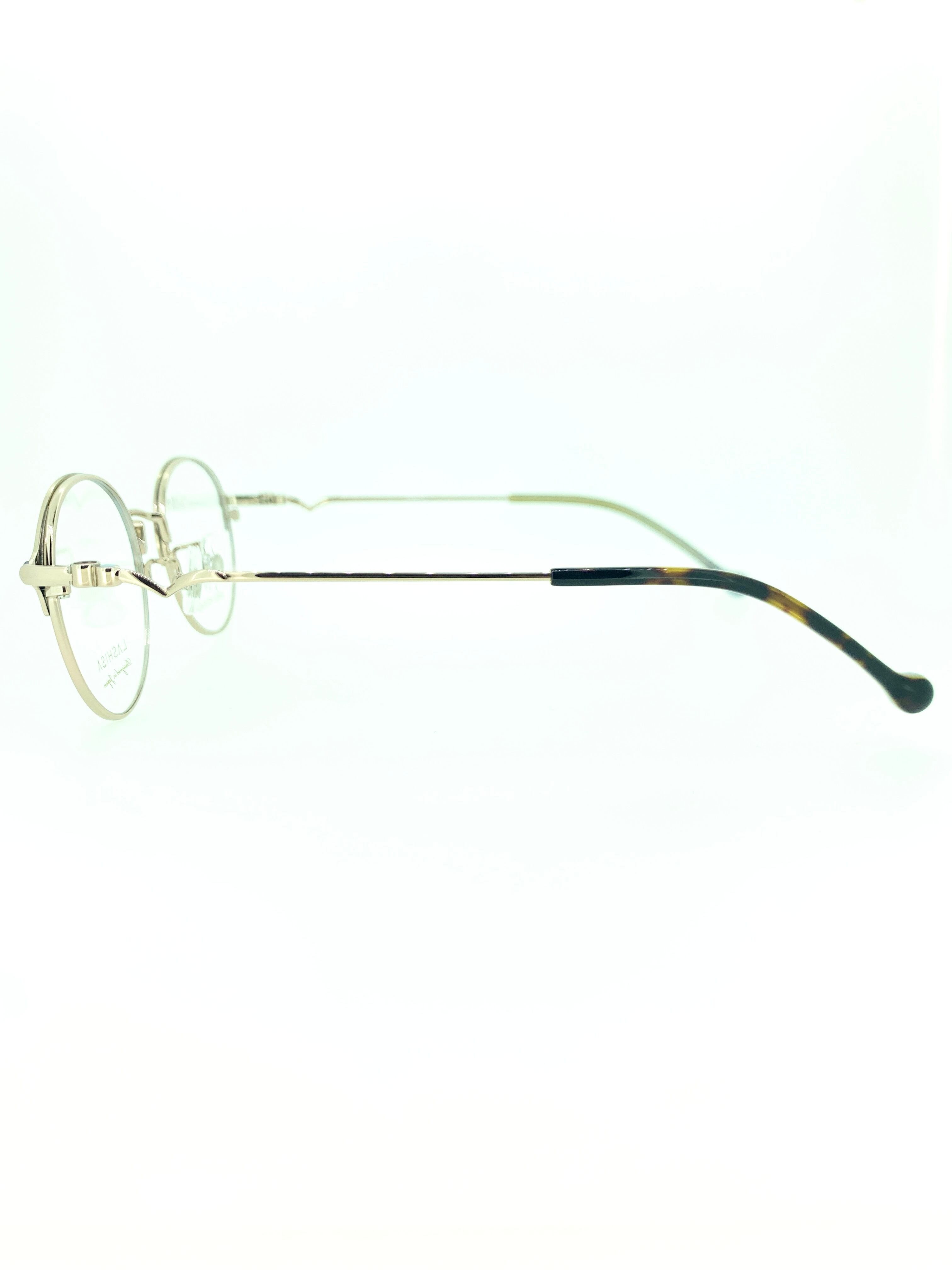 ラウンドシェイプにメタル地のブローチックデザインがシックでお洒落な細身メタルフレーム。寒色系にはぴったりのシルバーメタルに先セル(耳当て)はブラウンデミとゼニスブルーのバイカラーを採用していて、見てもかけても心躍るカラーリングになっています。テンプルの造形や先セル先端のロゴなど細かいところまで行き届いた高いデザイン性が魅力です。