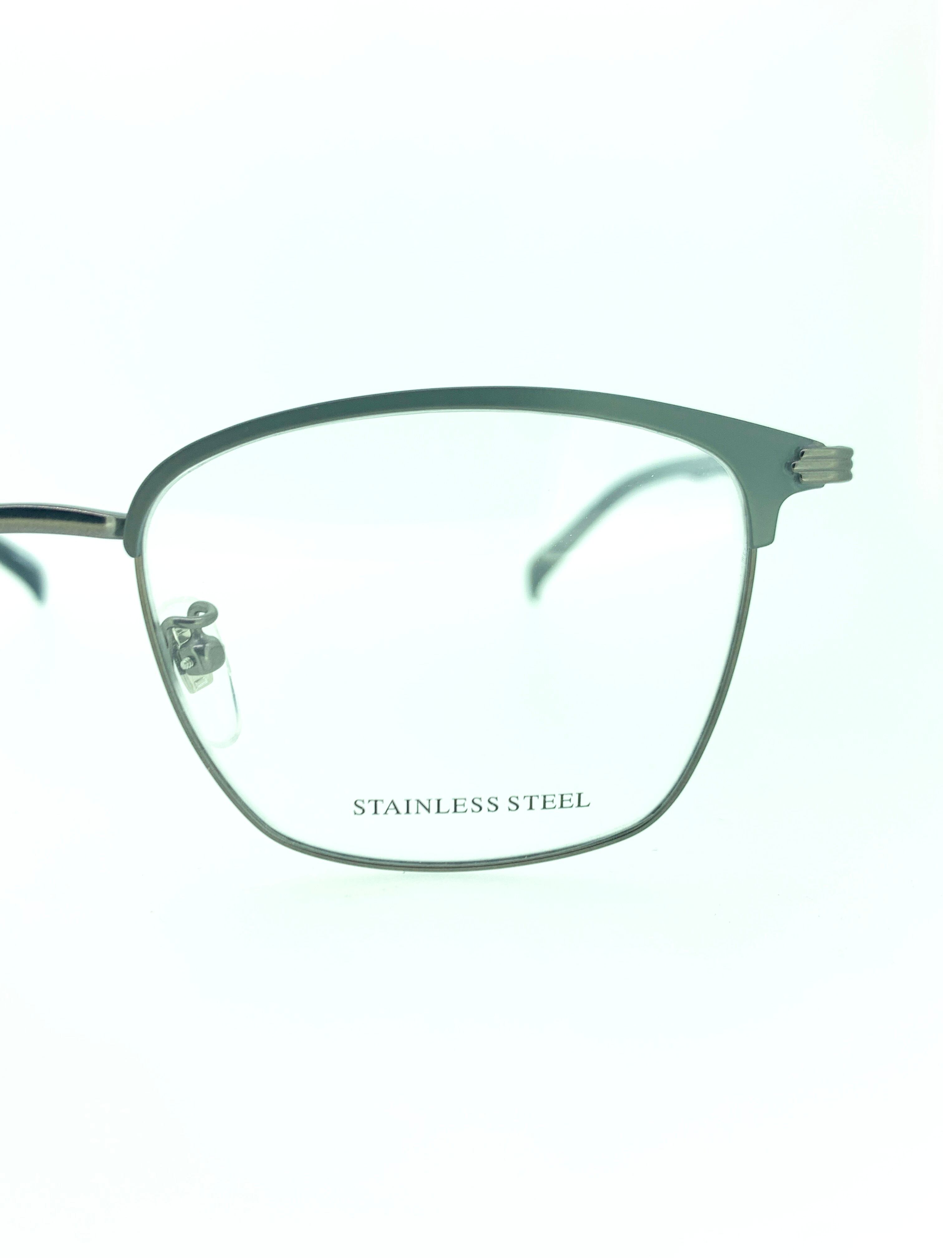 ガンメタルにグレーのプリントブローがシブ格好良いウェリントンフレーム。正方形に近いオールドスタイルのレンズ比率が色味と相まって、時代に逆行するお洒落さがある作品です。上部リムのブローデザインはメタル地にプリント加工を行ってカラーリングしているため厚みが無く、カジュアルにかけられどんなシーンにもマッチします。