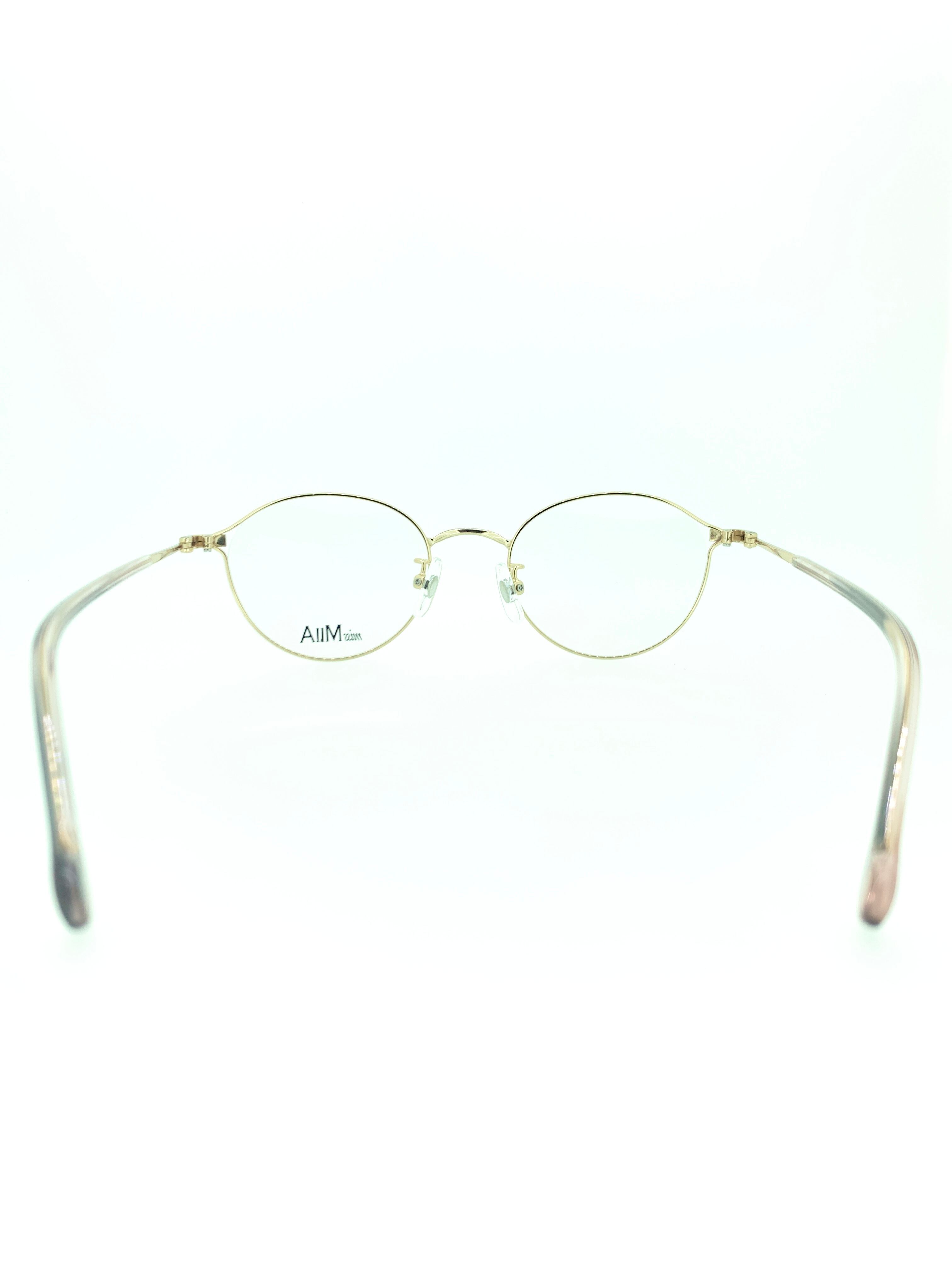 オールドローズカラーのフロントリムがシックで清潔感のあるボストンシェイプのメタルフレーム。艶やかなゴールドメタルにグレーが混ざったクリアピンクの先セル(耳当て)が可愛らしさの中に落ち着いた雰囲気を醸し出しています。目尻の一部をリムレスデザインにすることでスタイリッシュな印象になっているのもポイントです。