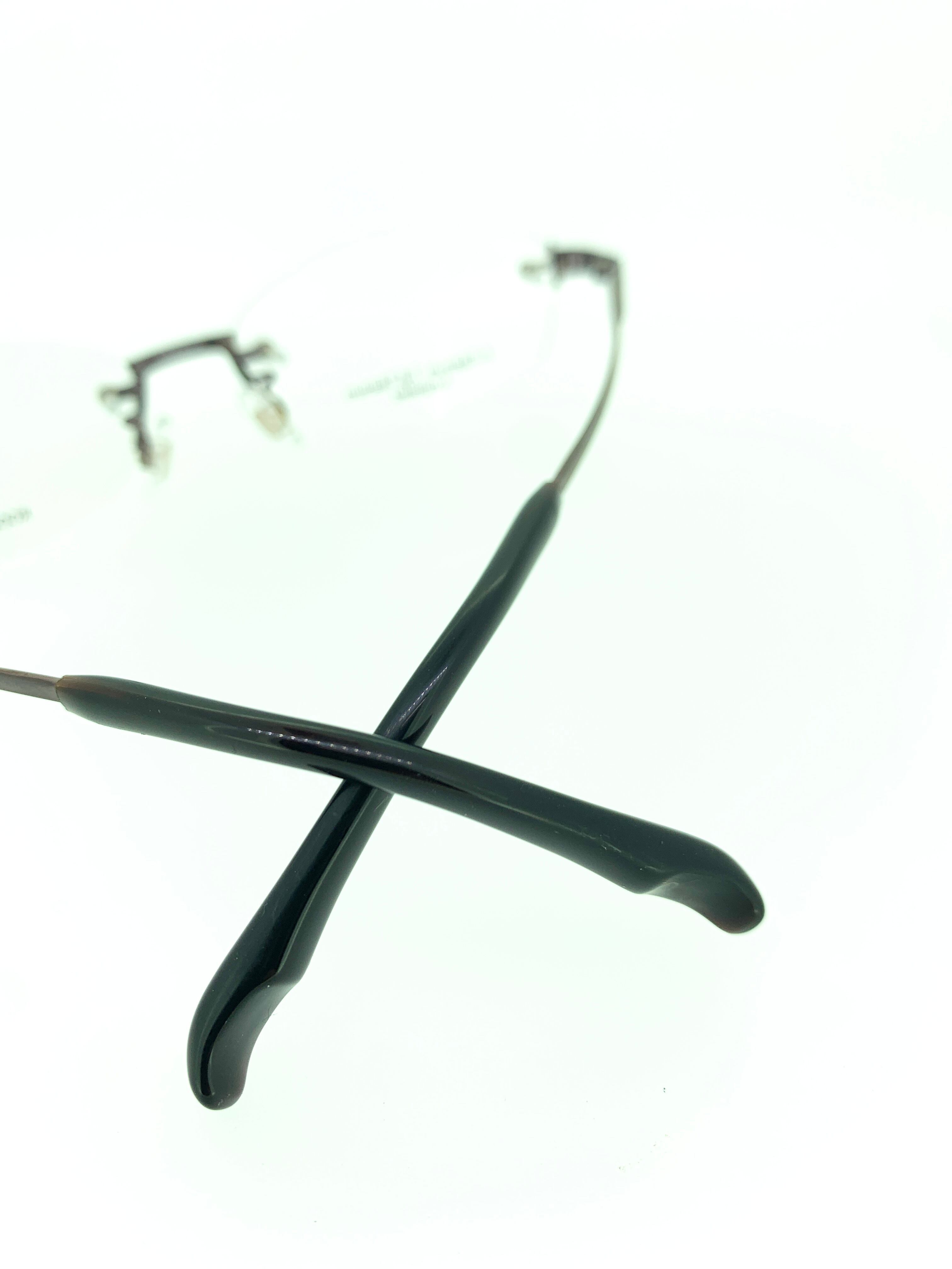 オーバルのような丸みもあり、スクエアのような威厳もあるバランスが抜群のツーポントフレーム。シックなマホガニーカラーのメタルと誠実な印象のシェイプデザインには、信頼のおける安定感の中に他とは被らない個性がありますね。癖のないシンプルデザインなのに細かな所で違いを魅せるデザイン性の高さが窺える作品です。
