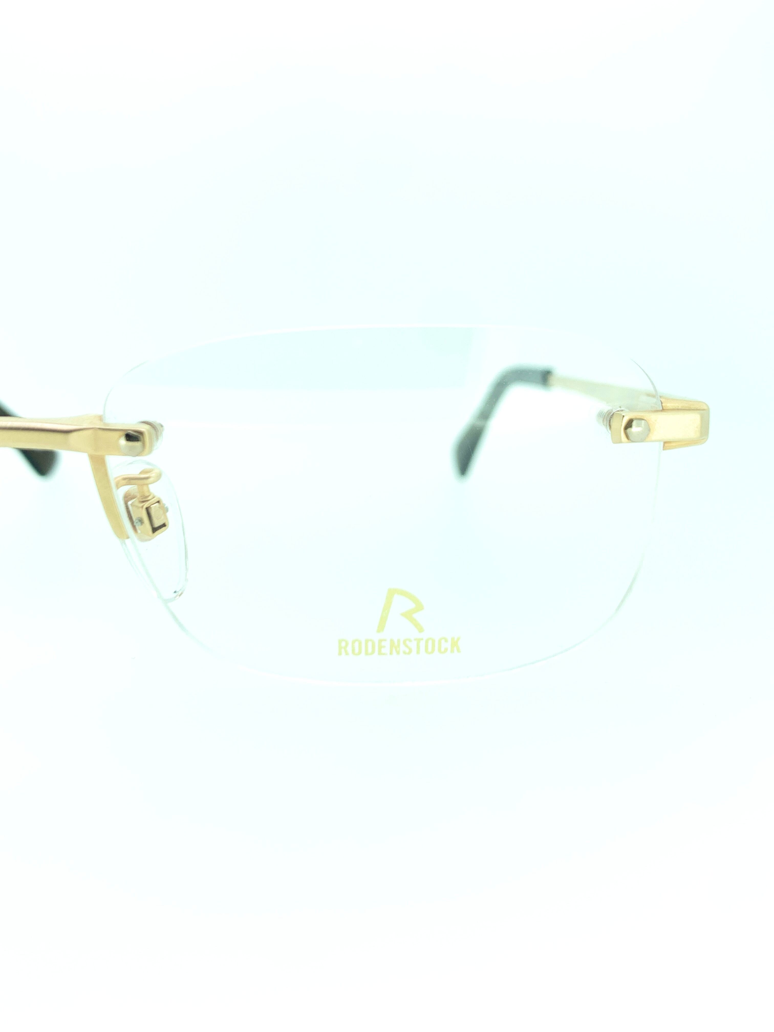 艶消しで質感の良いゴールドメタルのツーポイントにオールドスタイルで天地広めのスクエアシェイプが渋い作品。伝統的でまとまりのあるシルエットとカラーリングは、変わらない品質の高さを誇るRODENSTOCKらしいアイテムとなっています。耐久性に強いチタニウムとバネ丁番のフィット感もあり機能的にも良質な1本です。