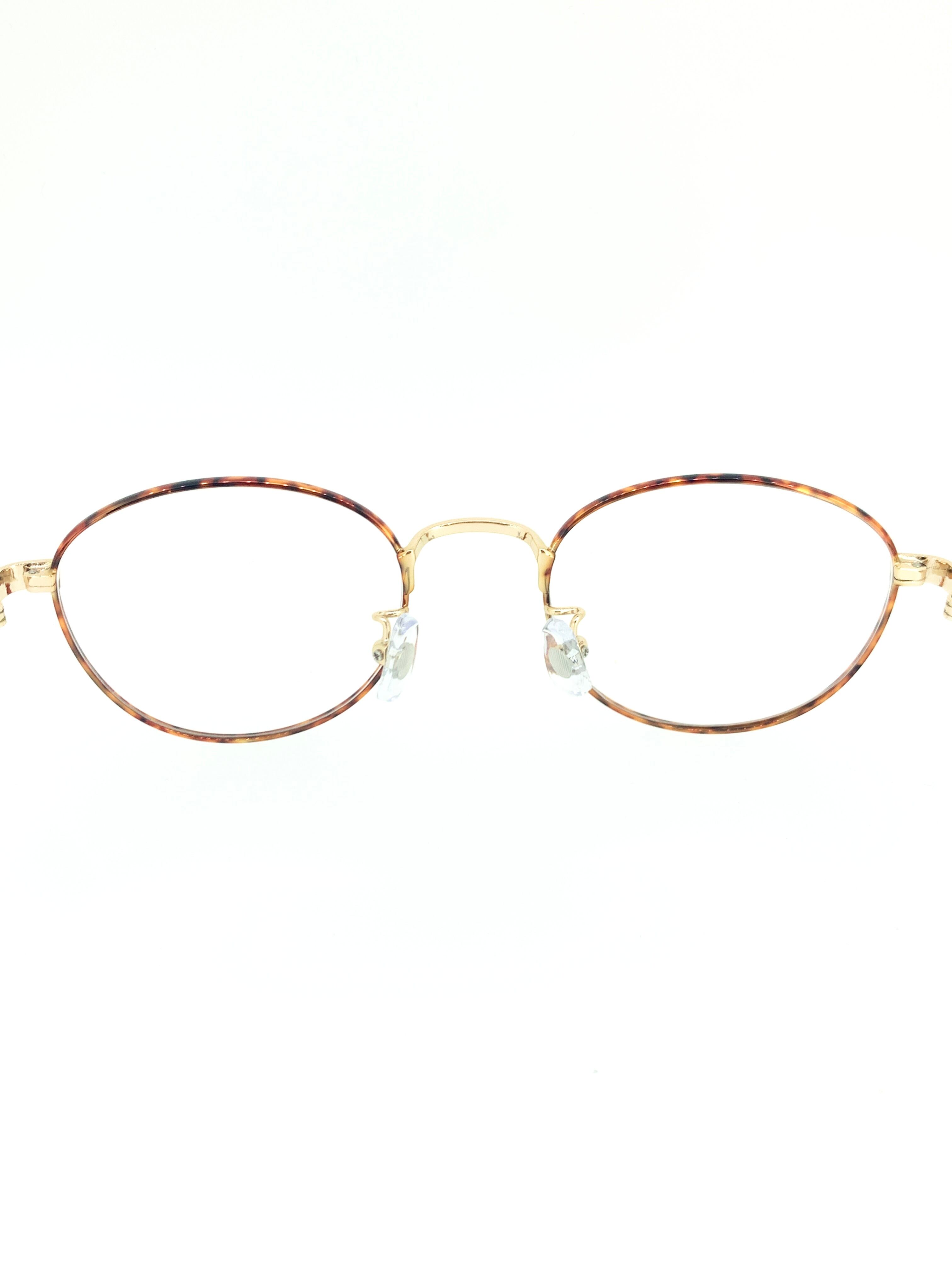 鮮やかなオレンジに濃淡ハッキリとしたレッド系ブラウンデミのカラーリングが綺麗なボストンシェイプのメタルフレーム。上部リムのカーブは緩やかで丸みの少ないシェイプデザインで、どこか懐かしくなるクラシカルなスタイルも魅力的ですね。ヨロイから丁番部分まで昔ながらのミル打ちという技法が施され、低価格でもデザイン性を忘れない優秀な作品に仕上がりました。