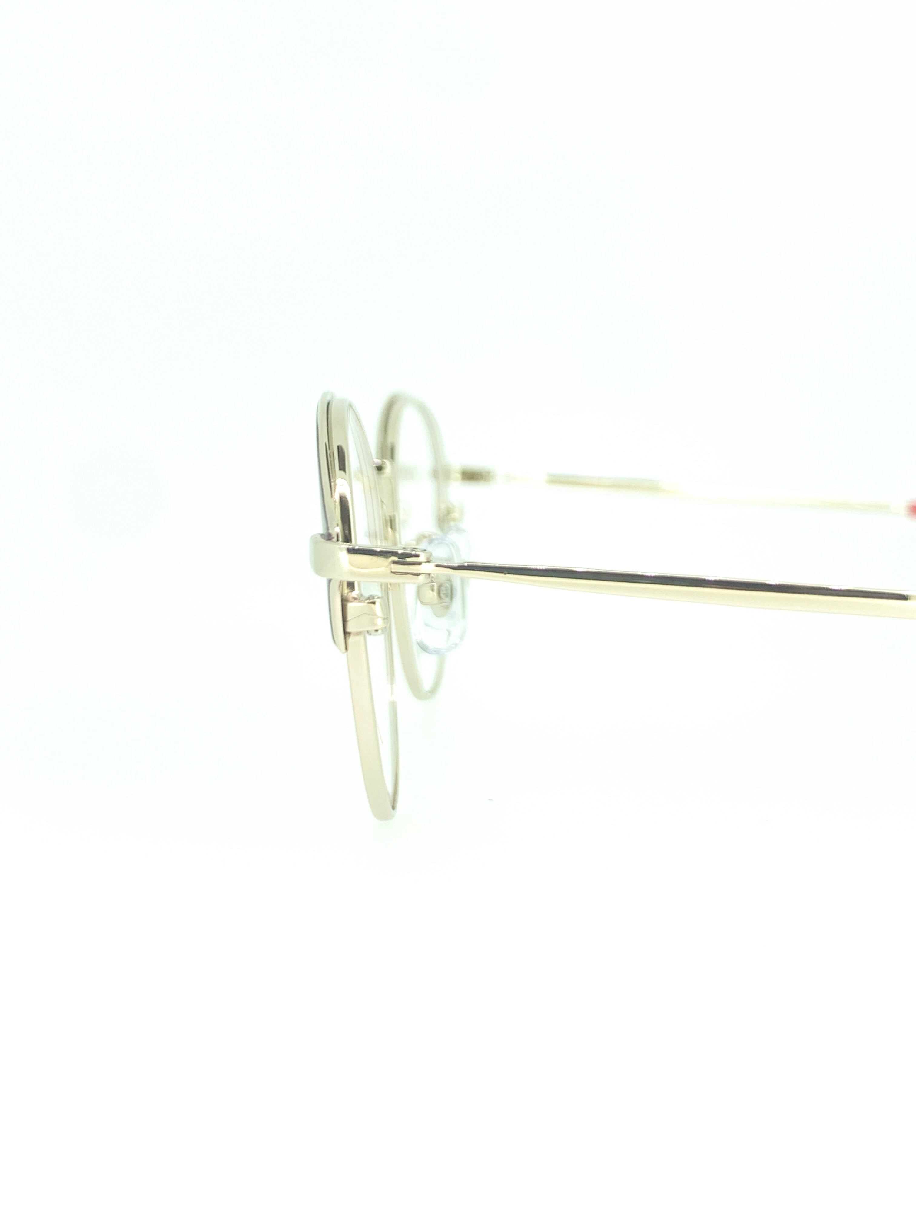 丸みのあるボストンシェイプにブロー風のリムデザインがお洒落なメタルフレーム。シルバーメタルをベースカラーにシックなレッドカラーの色味が癖なくかけられるデザインとなっています。ブロー部分はメタル生地を重ねている仕様なので、セルブローよりも強調した感じがなくカジュアルな雰囲気となっています。色味もお顔の発色が良く見えるのでオススメのアイテムです。