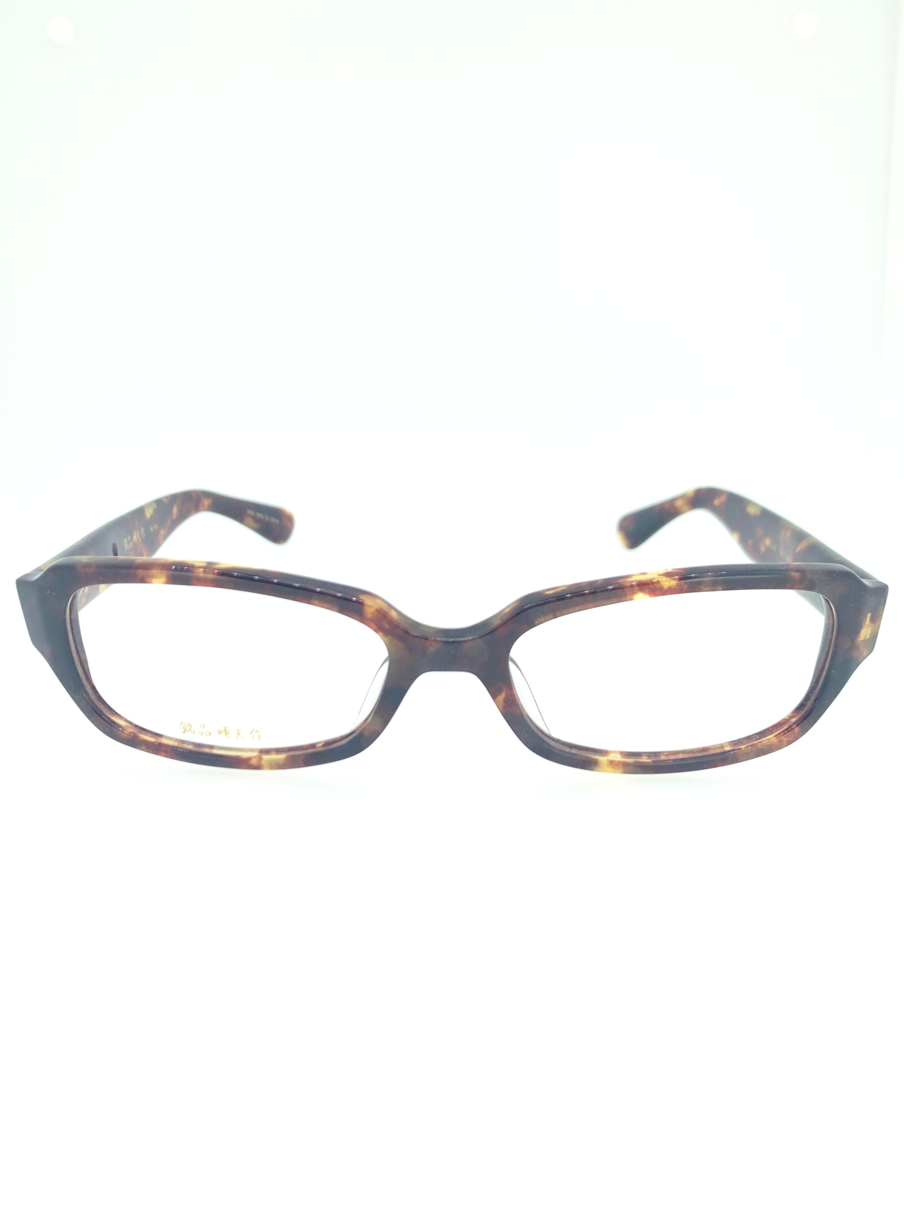 濃淡ハッキリとした綺麗なブラウンデミのセル生地にスタイリッシュなスクエアシェイプが格好良い作品。型崩れしにくく加工もしやすい伝統的なセルロイドを用いたフレームは質感や色味もアセテートに比べて深みのある作品となっています。職人技の光るフレームラインとしっかりとした厚みのセル生地は存在感があり、コーデの主役にもなれる至極の一品です。