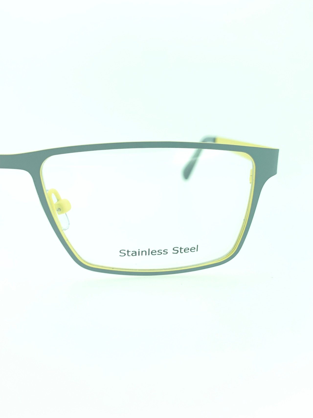パステルグレーにパステルイエローの淡くもビビットなカラーリングがお洒落なスクエアシェイプのメタルフレーム。イエローの部分は主にインナーカラーとして採用されていますので、かけた時には隙間から除く差し色として主張し過ぎないデザイン、外した時には眺めるだけでも嬉しくなる作品となっています。