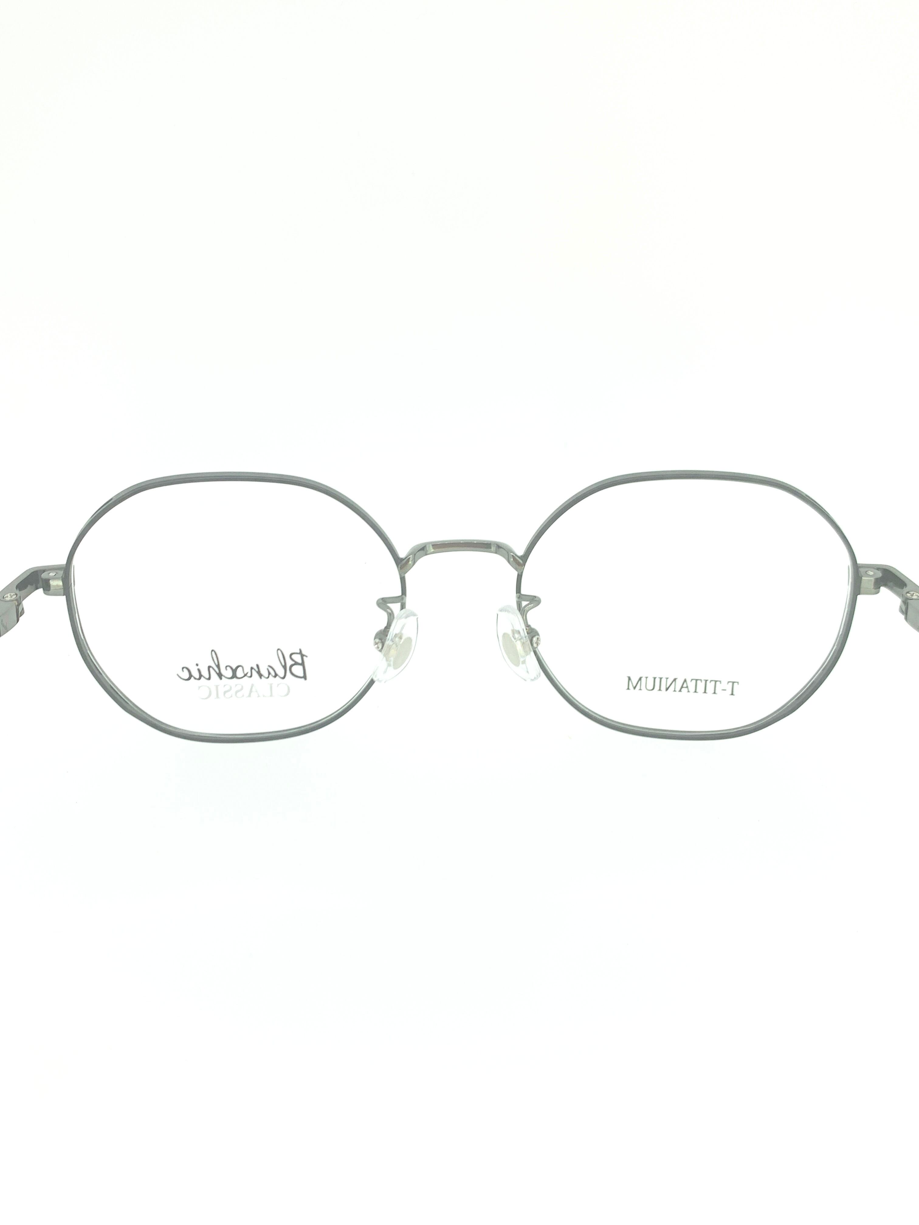 大きめなオクタゴンシェイプに奥行きのあるリムを合わせたモダンでモード感のあるメタルフレーム。ダークグレーのボディーとブラックカラーの先セル(耳当て)でシックにまとめた格好良い作品です。フロントデザインは大きめなので、伊達メガネやカラーレンズを使ってコーディネートのアイテムとしても優秀なお洒落なアイテムとなっています。