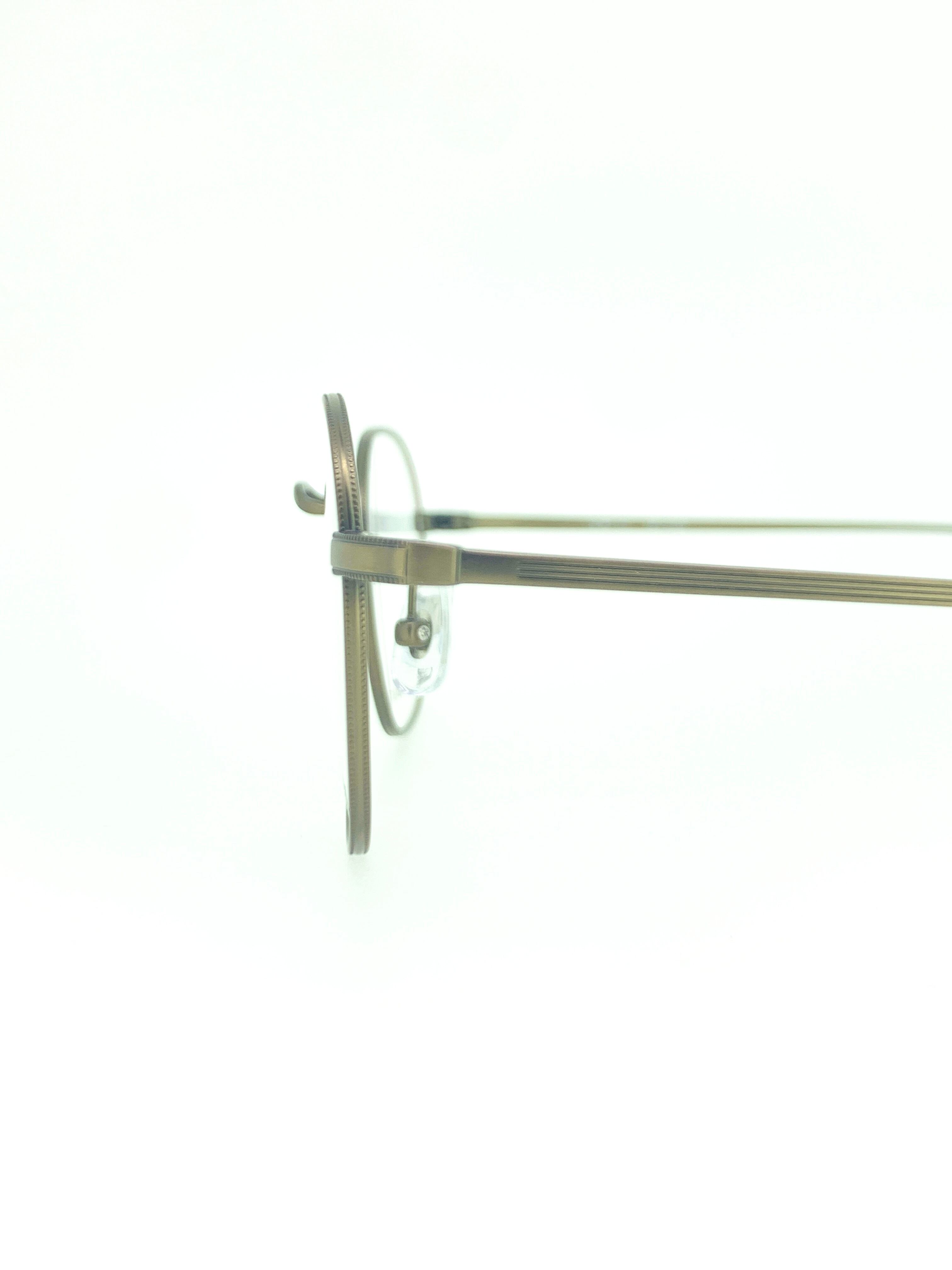 今流行りのレトロっぽいシェイプデザインにフルメタルのオールドスタイルが抜群にお洒落な作品。ゴールドでもブラウンでもないメタルの色味加減が絶妙で、モダンとレトロのバランスをしっかりと取っています。メタルフレームには細かなミル打ちも施されていて優秀なプチプラアイテムとなっています。