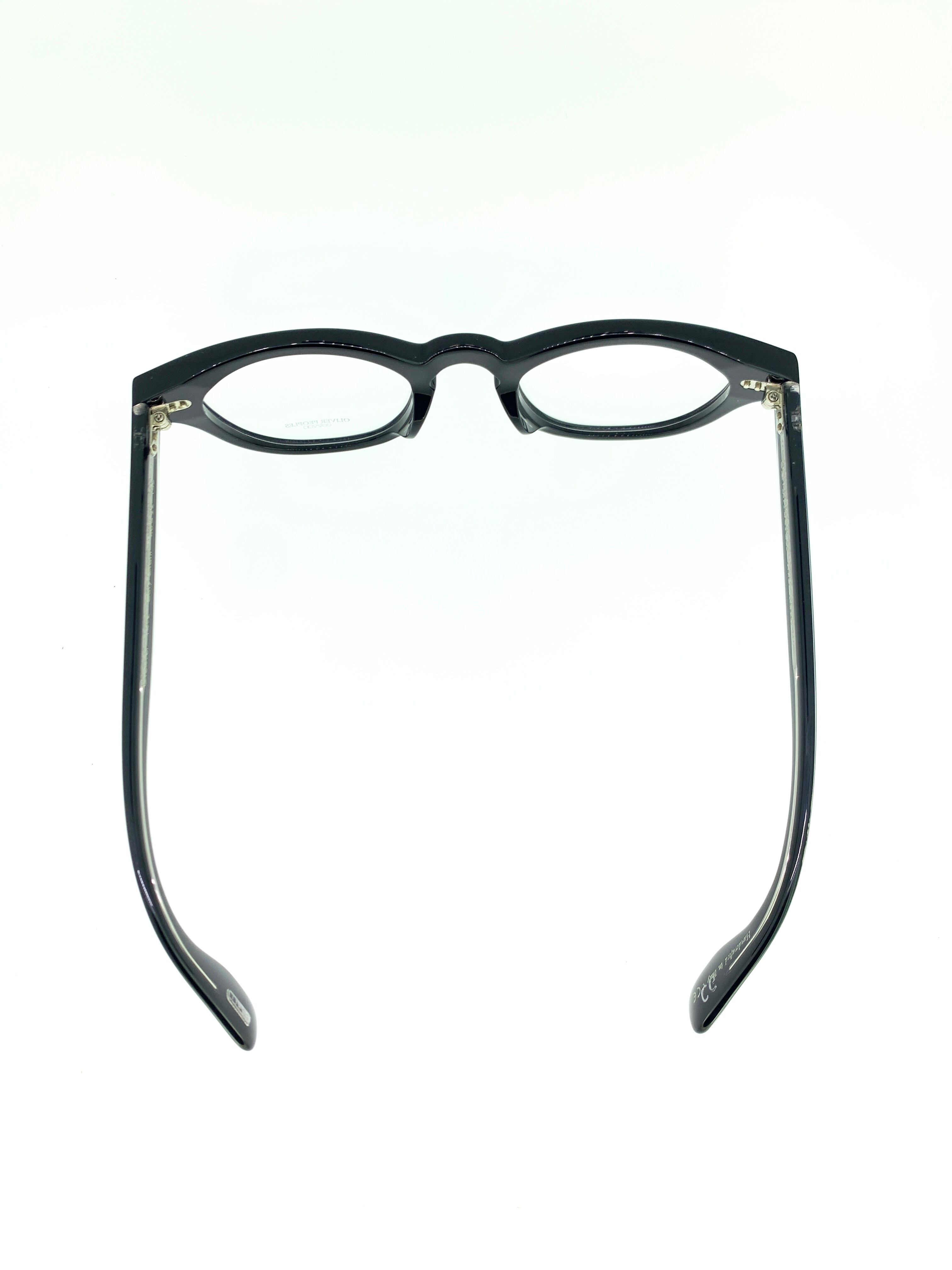 しっかりとした幅を持たせたブラックカラーのセル生地で、ウェリントンに近いボストンシェイプにクラシカルなキーホールブリッジがお洒落なセルフレーム。OLIVER PEOPLESの中でも人気のCary Grantというモデルで、丁寧なフレームワークが特徴的な作品となっています。テンプルインナーはスケルトンになっていて、シルバーメタルを覗かせたデザイン性の高い至極の1本です。