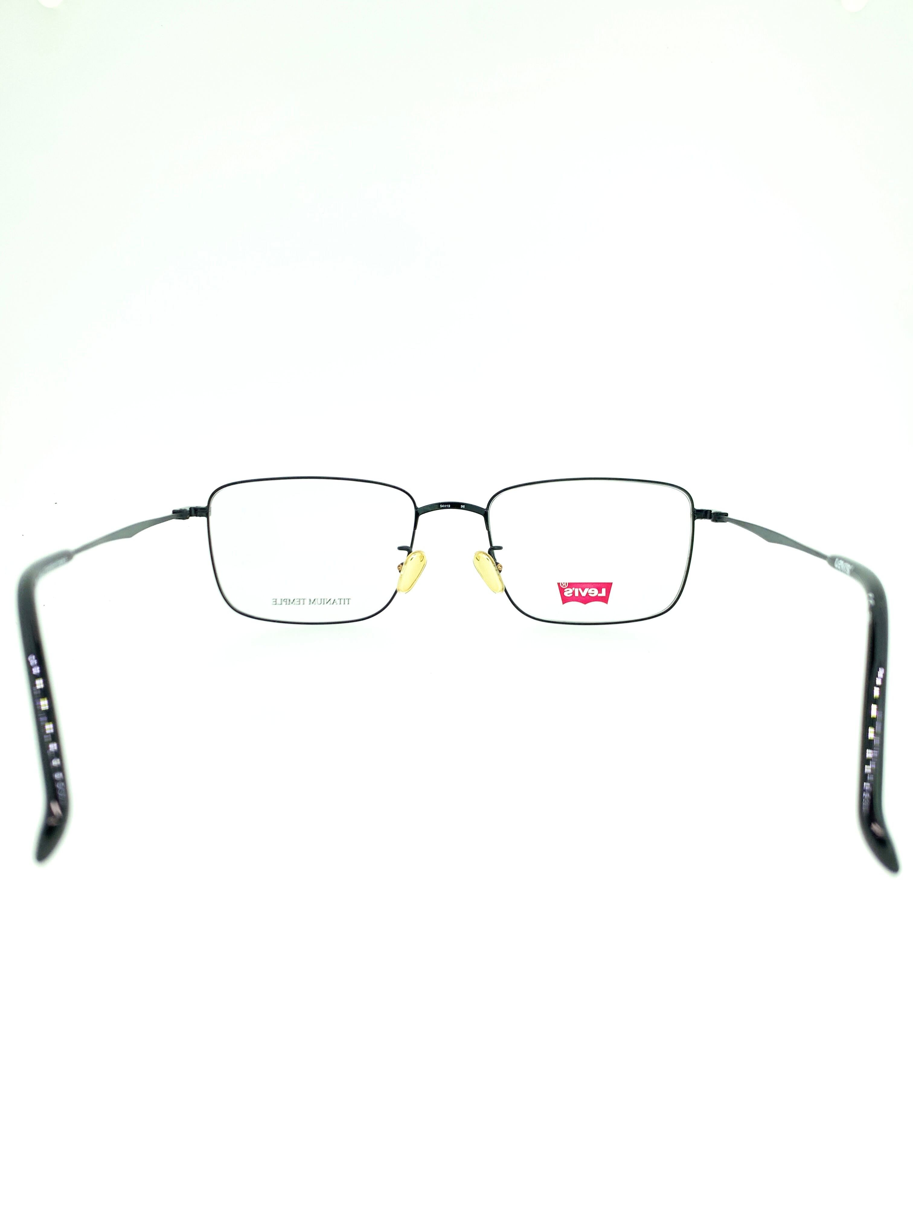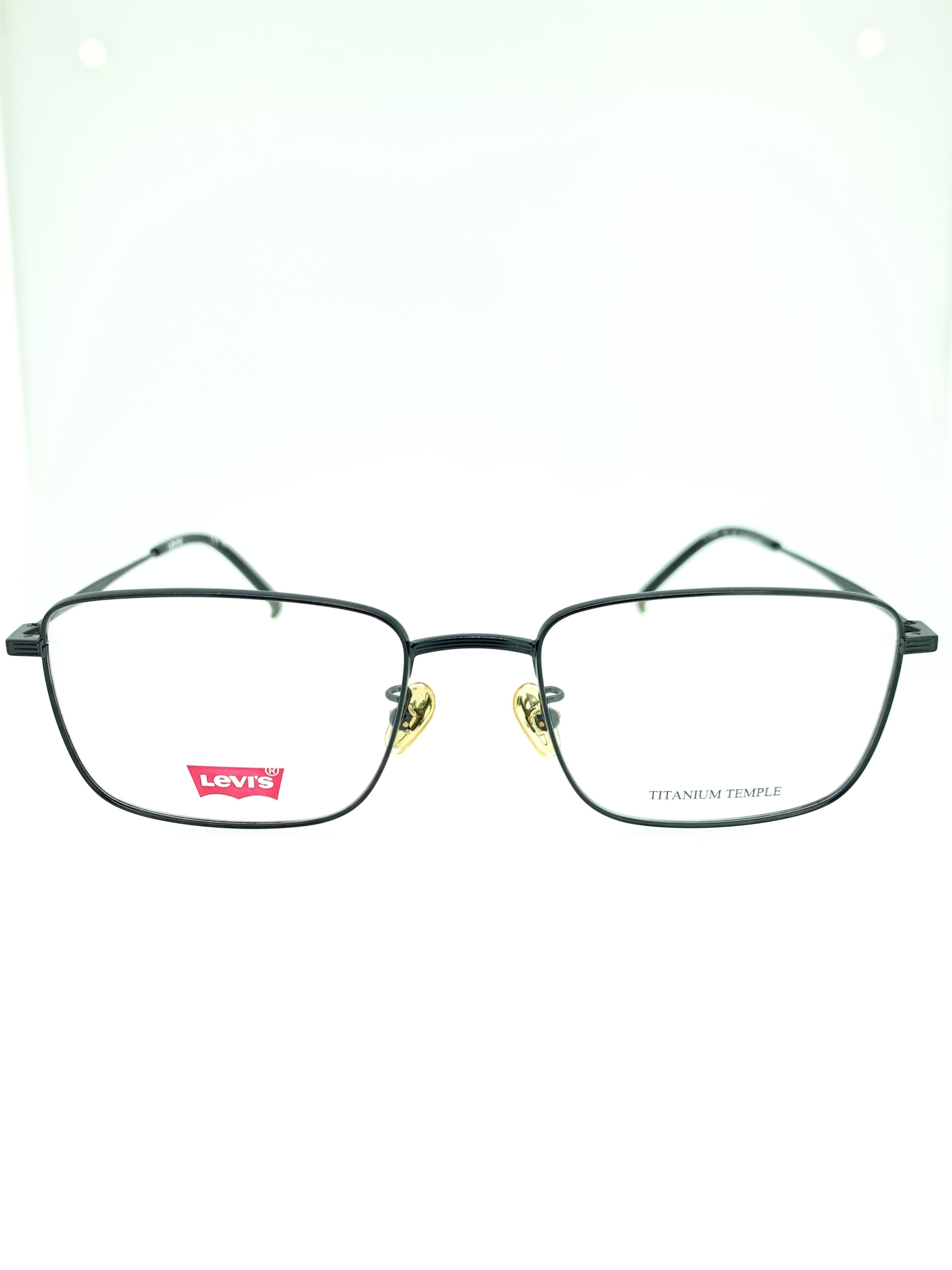 しっかりと角を出したウェリントンシェイプに極細メタルを合わせた無骨で紳士的なメタルフレーム。カラーリングは光沢を抑えたブラック単色にすることで洗練された雰囲気を纏っています。レトロなシルエットのフロントにブラックカラーのモダンな感じが、時代に逆行するようなお洒落感があって個人的のオススメです。テンプルのLevi’sの文字や鼻パッドのゴールドカラーも上品に引き締めています。